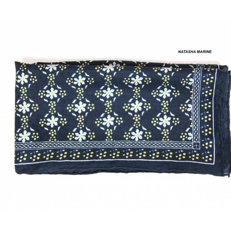 100% coton bio 100 x 100 cm Dessiné à la main en France Imprimé à la main en Inde