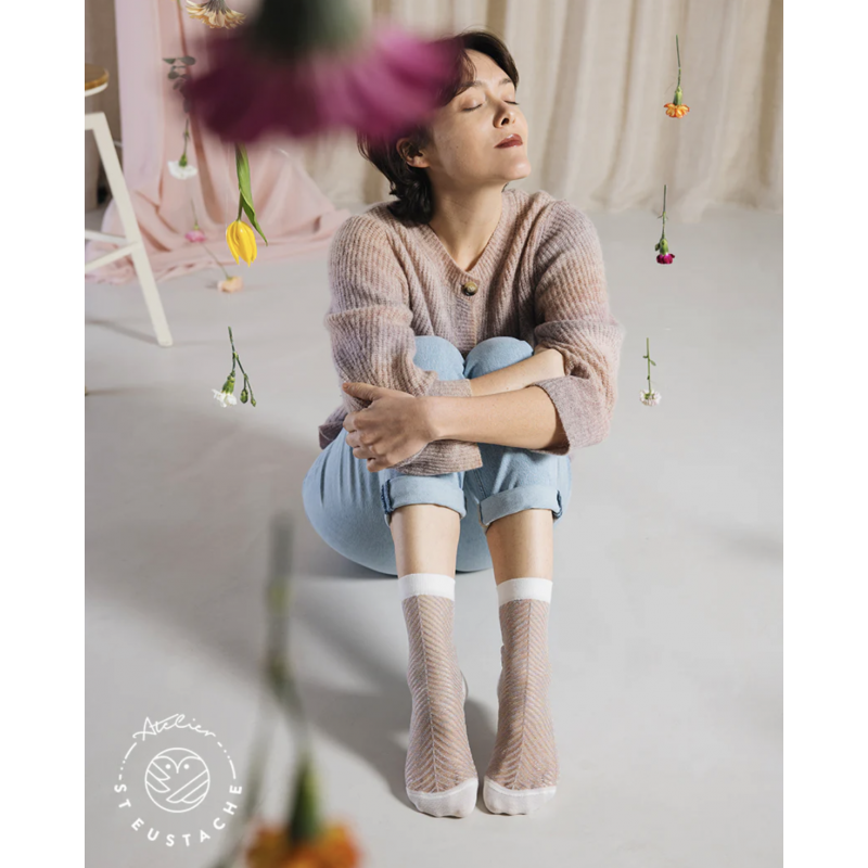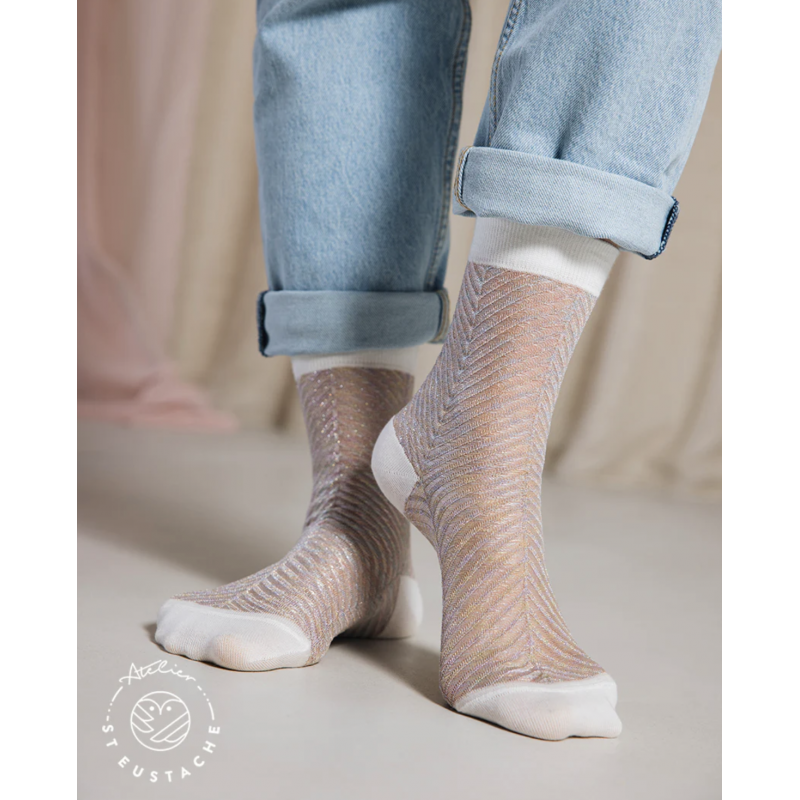 Découvrez la nouvelle gamme de chaussettes colorées en lurex pailleté ! Composition : 75% Bambou Lyocell 15% Polyamide 8% Fibres Métalliques 2% Elasthanne.