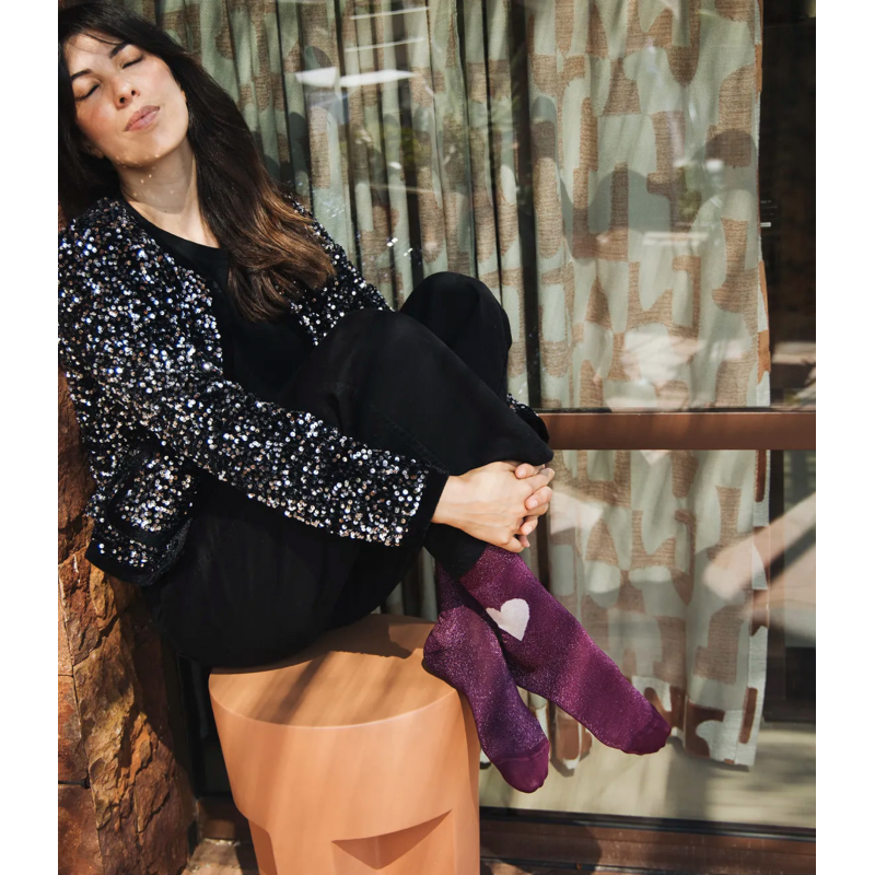 Découvrez la nouvelle gamme de chaussettes colorées en lurex pailleté ! Composition : 75% Bambou Lyocell 15% Polyamide 8% Fibres Métalliques 2% Elasthanne.