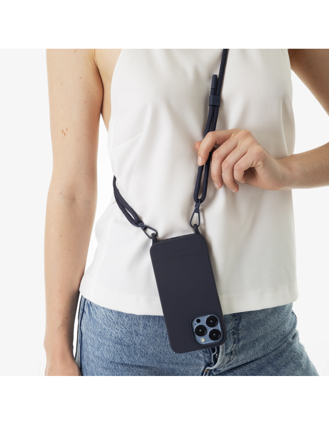 cordon détachable CHARLOT s'enlève en 1 clic grâce à ses mousquetons.