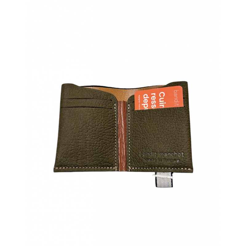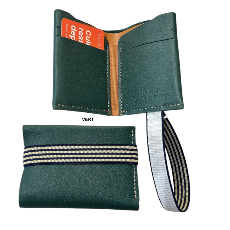 Dimensions : hauteur 6,5 x longueur 10 cm cuir ressourcé Ce porte-cartes en cuir ressourcé se replie ingénieusement sur lui-même et est maintenu par un élastique. Il comprend 3 compartiments pour les cartes. Pièce fabriquée dans le Tarn.