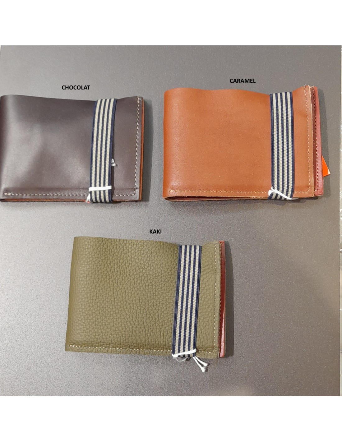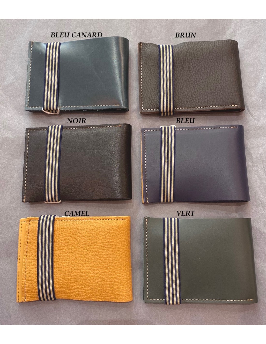 Portefeuille pour homme en cuir upcyclé avec poche zippée fermeture élastiquée, de chez BANDIT MANCHOT.
