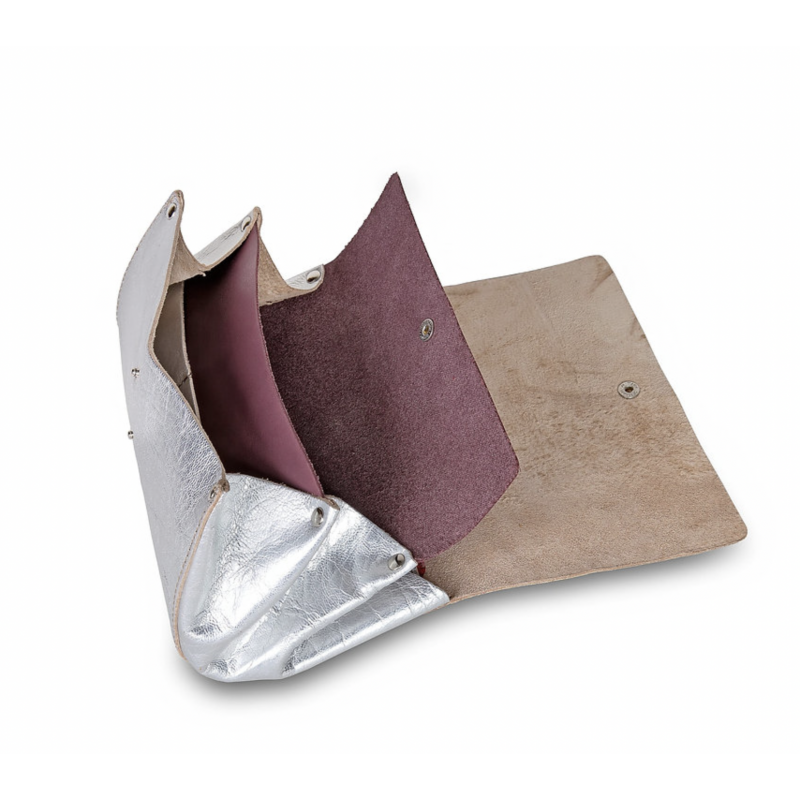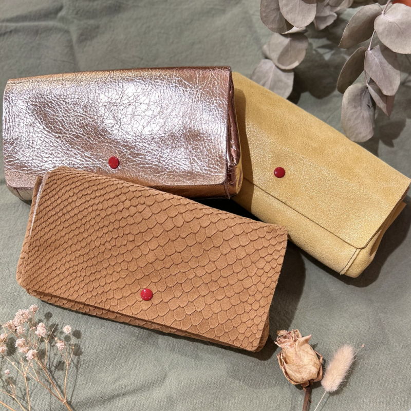 Compagnon à pression Cuir ressourcé Fabriqué en France Dimensions : H 9,5 x L 14,5 cm