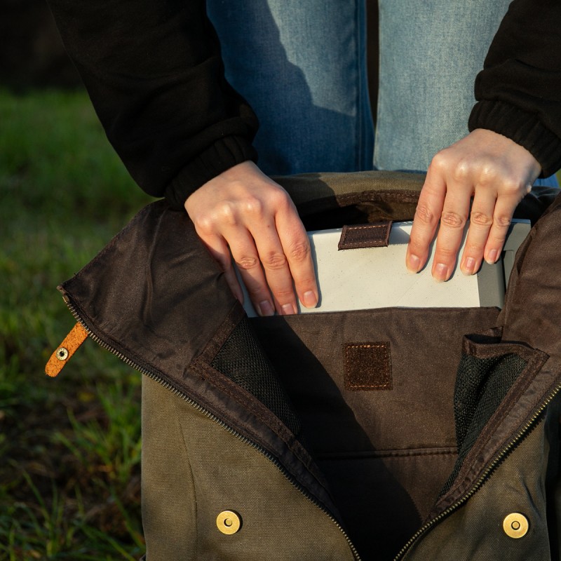 Toile waxée déperlante & cuir véritable 3 grands compartiments indépendants Rangements intérieurs multiples 1 emplacement conçu pour un ordinateur jusque 19 pouces