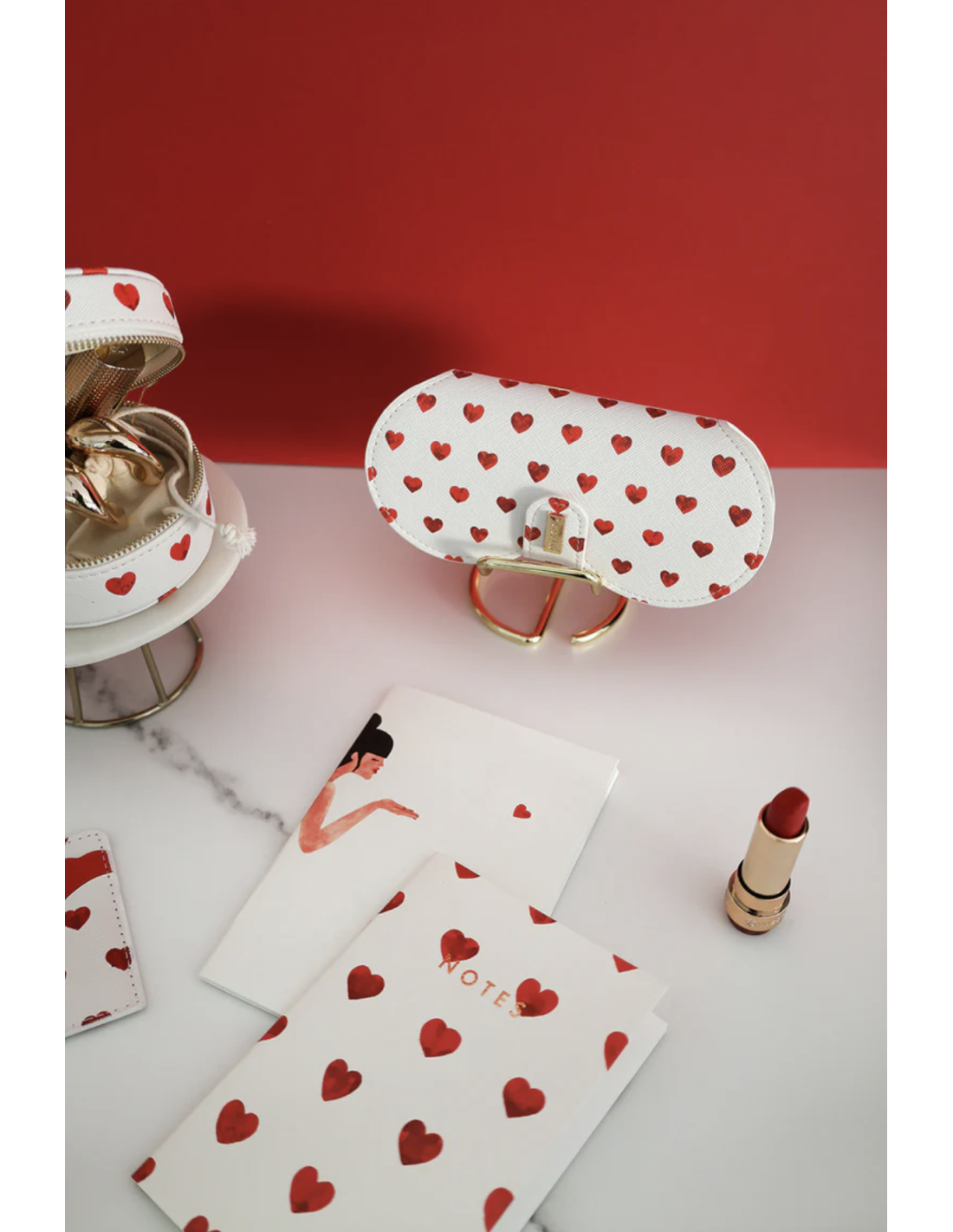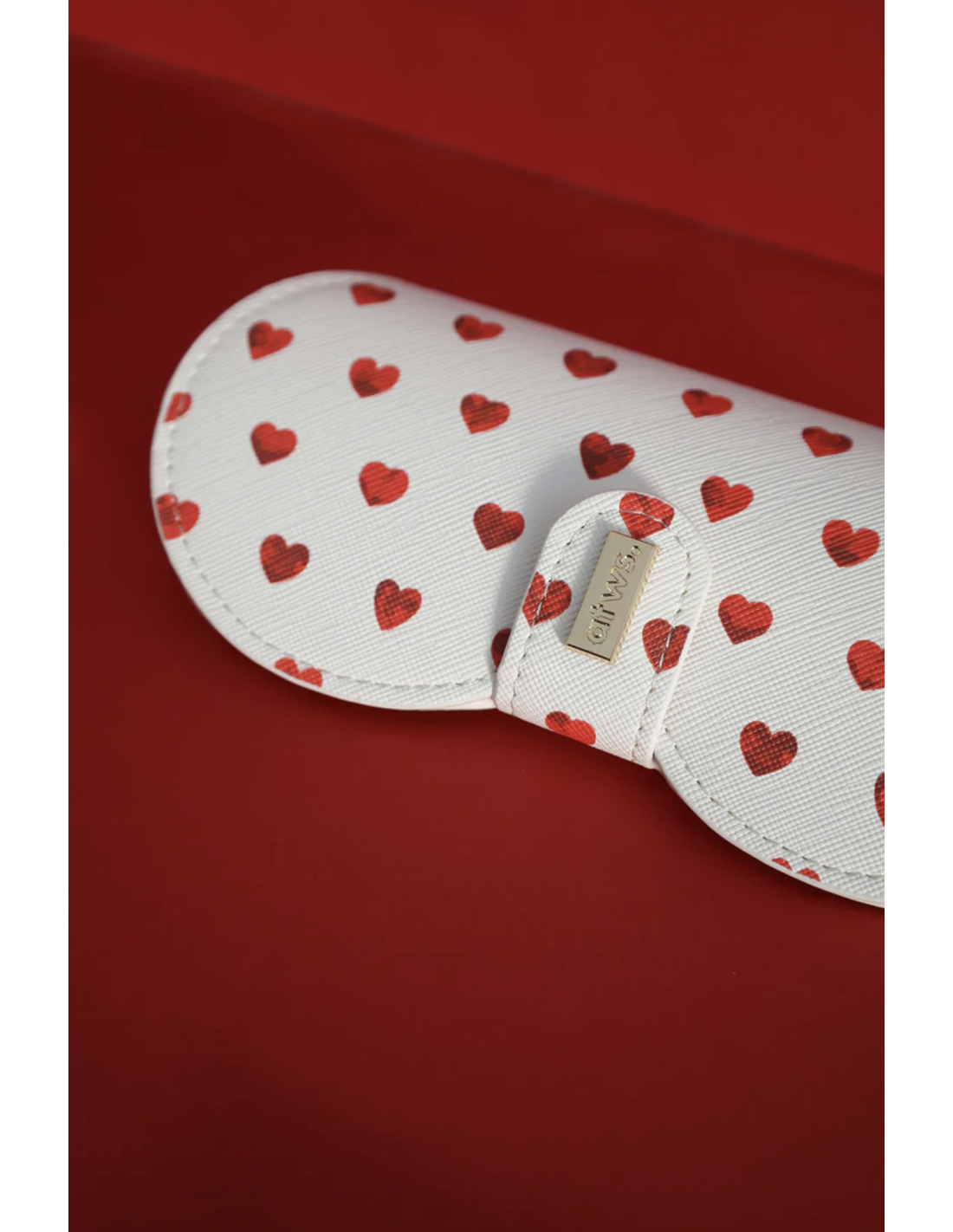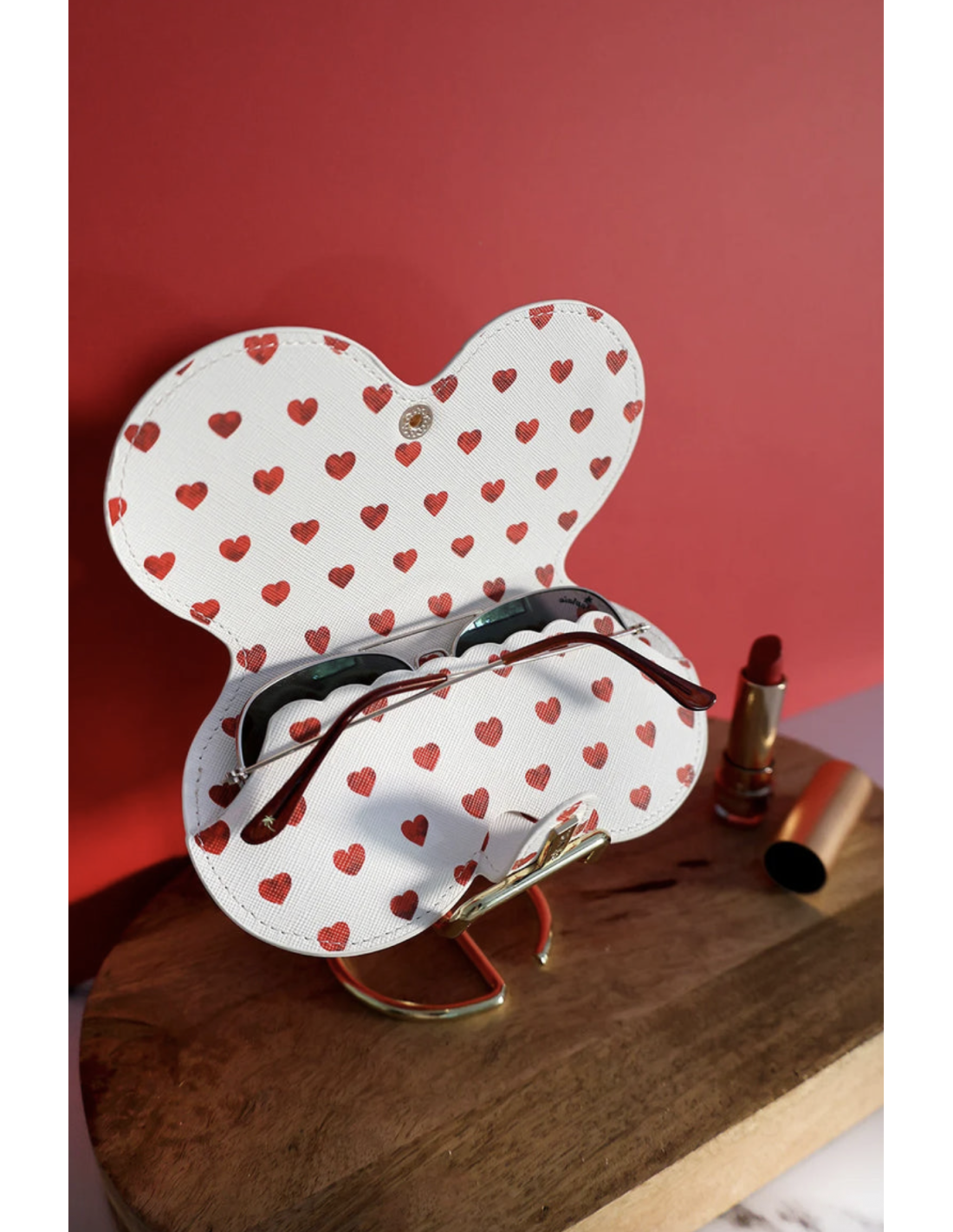 Fabriqué en cuir PU imprimé et orné d'un petit logo gravé sur laiton émaillé, il est doté d'un clip pratique pour une fermeture sécurisée et d'une poche intérieure souple pour protéger vos verres.