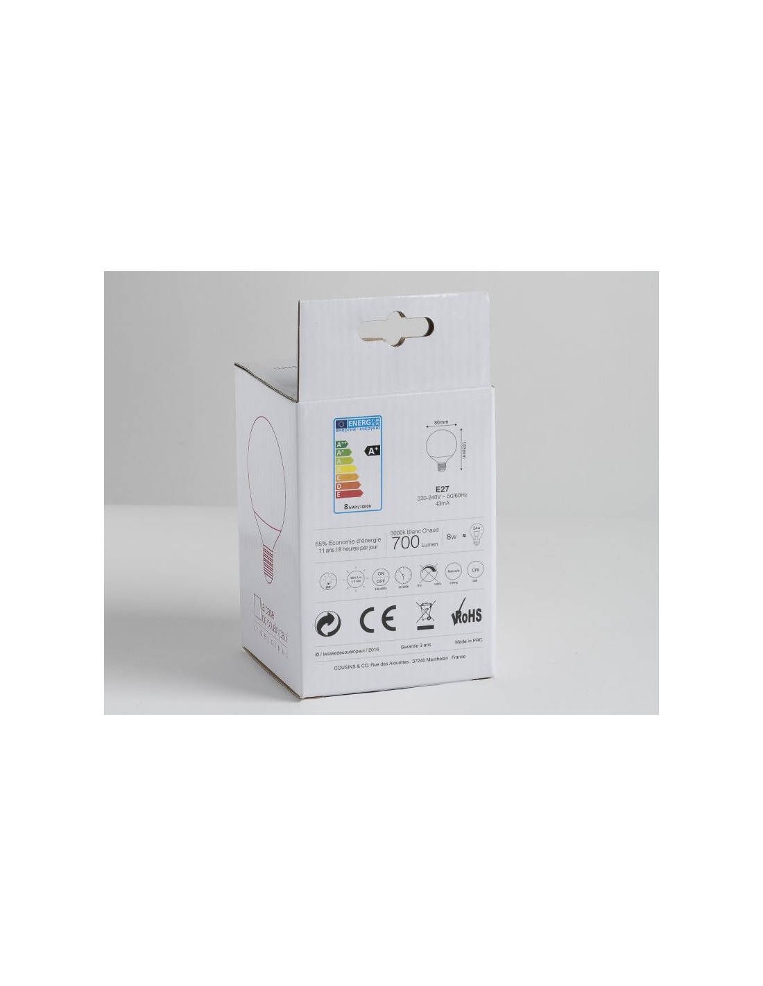 AMPOULE LED Ø 80 mm E27 - 220/240V ~50/60Hz :