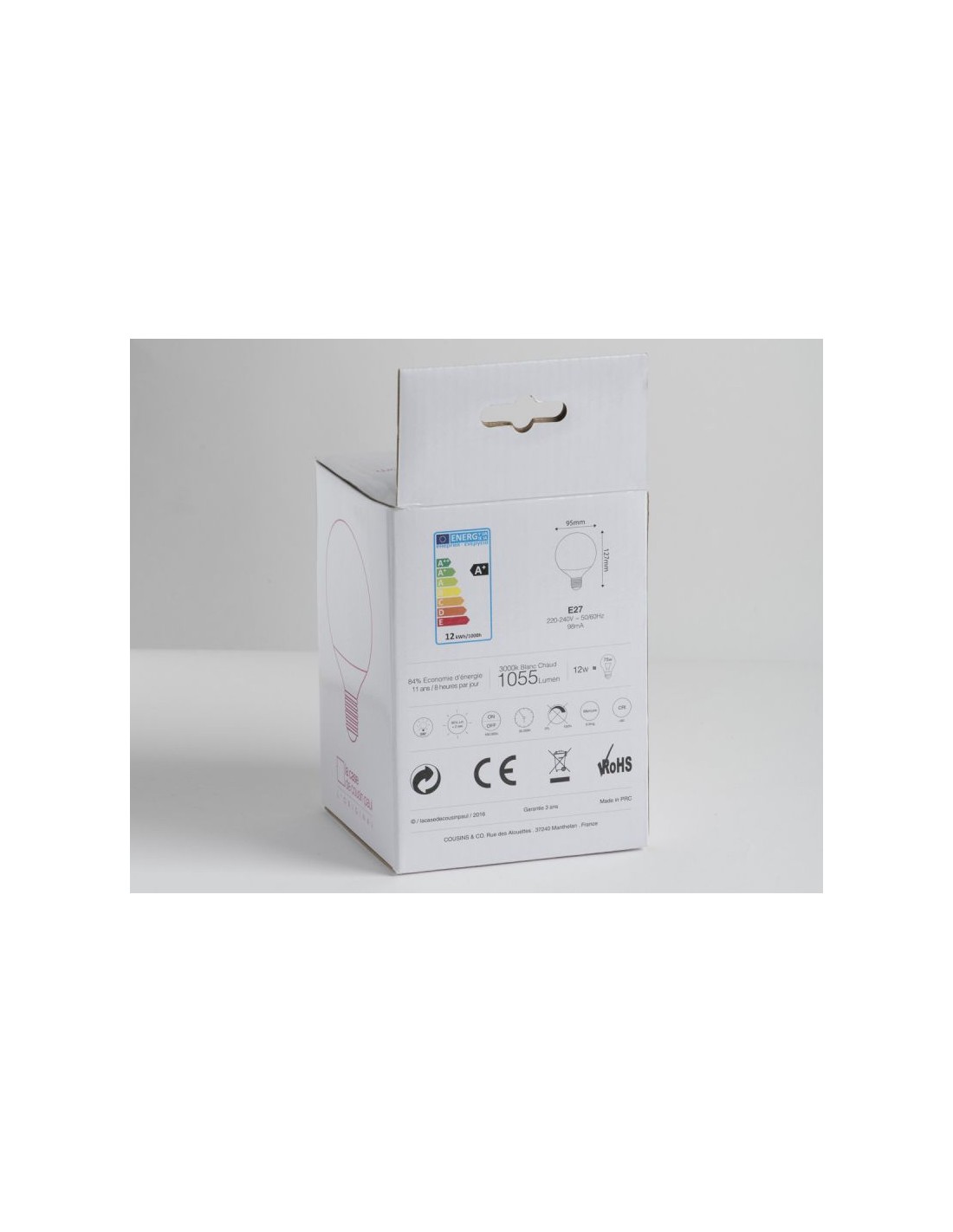 95MM : E27 - 220.240V - 50/60Hz blanc chaud 1055 lumen - 12W correspond environ à 75W