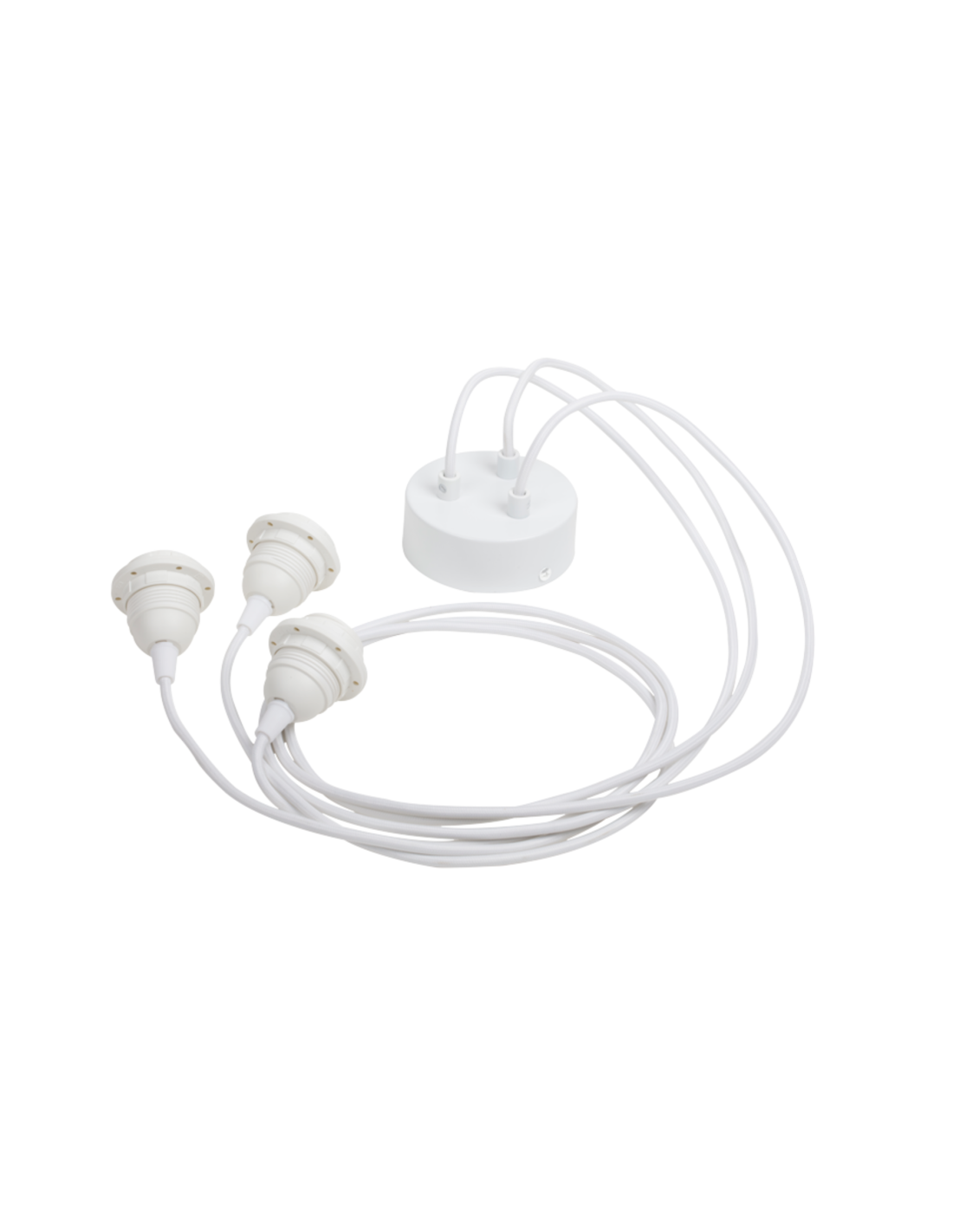 La suspension triple s’adapte à toute la gamme de luminaires, globe, coupole, cloche ou jupe : suspendez les en trio !