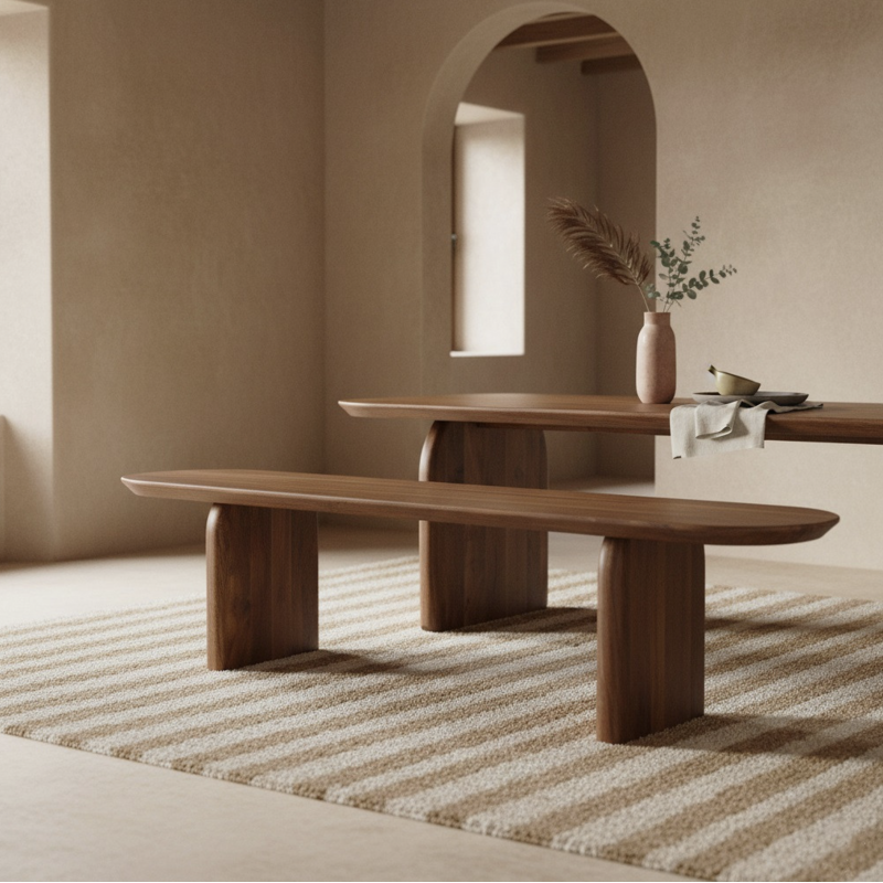 Le banc de salle à manger moderne Bullnose est fabriqué en bois de manguier.