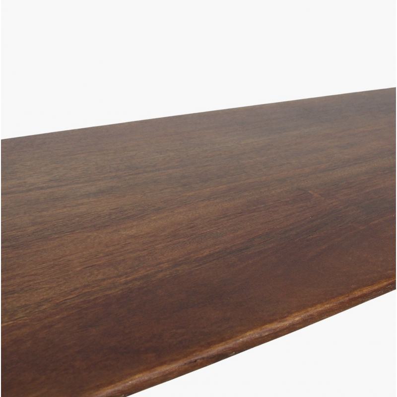 Le bois de manguier est poncé et recouvert d'une couche de vernis et de cire pour le protéger contre les taches d'eau.