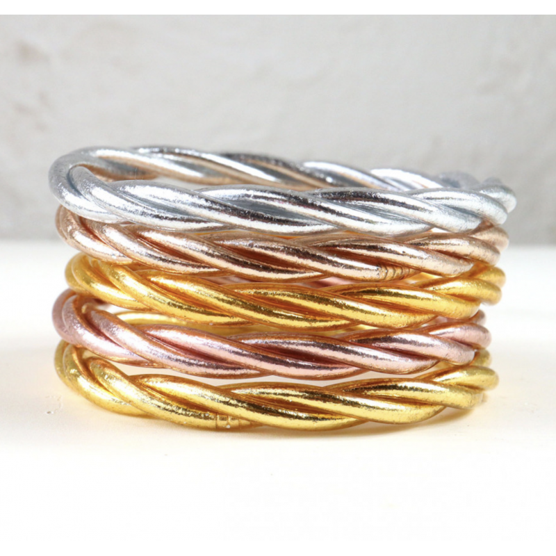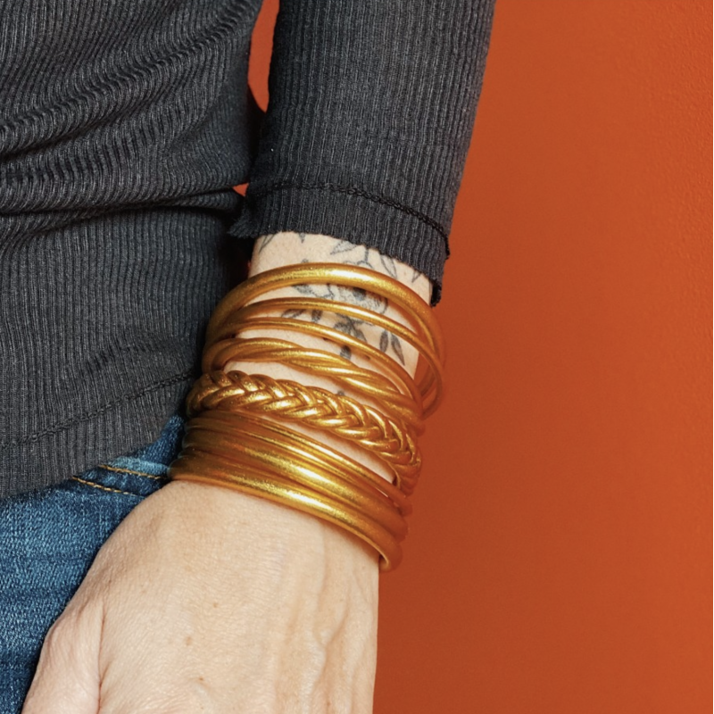 Bracelets bouddhistes, joncs souples transparents remplis à la feuille d'or