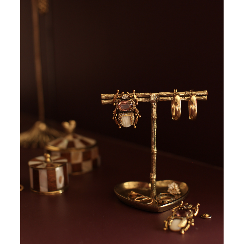 Elmas rose/vert Finition attache placage or Perles : laiton, strass, dalmatie Longueur : 4 cm