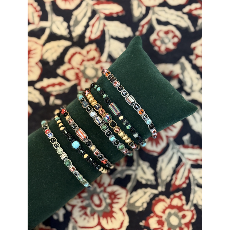 BRACELET AVEC PIERRES SEMI PRECIEUSE ET PERLE AFRICAINE OU BRELOQUE OR SUR FIL