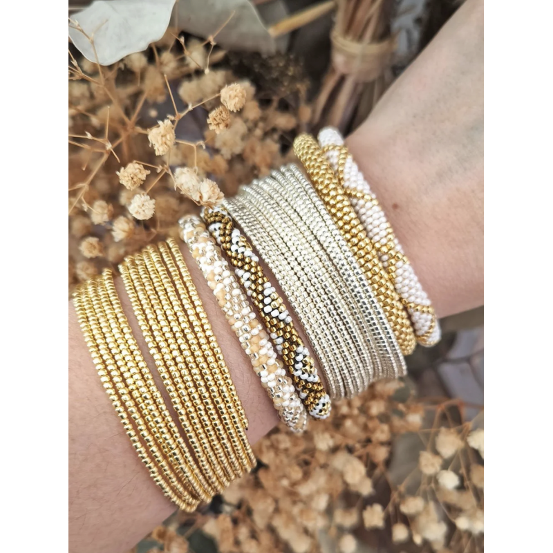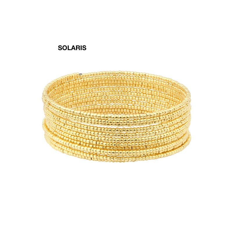 Perles miyuki de qualité supérieure Réalisés entièrement en perles Miyuki (perle japonaise de haute régularité), les bracelets Cosmos se démarqueront par leur brillance et aspect poli. On les aime pour réhausser les couleurs des autres collections, ils se marient parfaitement avec les Pital pour un mélange argent et laiton.