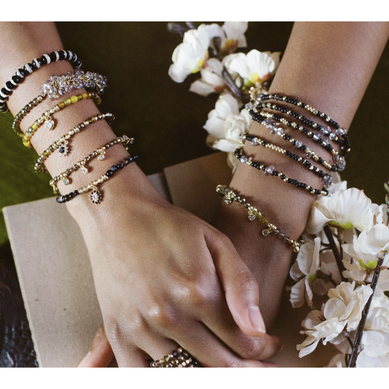 Perles miyuki de qualité supérieure Réalisés entièrement en perles Miyuki (perle japonaise de haute régularité), les bracelets Cosmos se démarqueront par leur brillance et aspect poli. On les aime pour réhausser les couleurs des autres collections, ils se marient parfaitement avec les Pital pour un mélange argent et laiton.