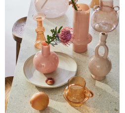 Dimensions : Ø 22.5 x 33 CM Matière : verre recyclé Un vase remarquable aux couleurs vives bleu, olive et violet. Avec son ventre arrondi et son col étroit, Lahja est à la fois ludique et sculptural. Une pièce maîtresse contemporaine, audacieuse