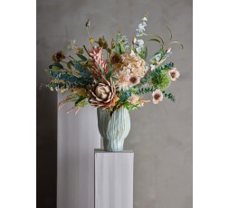 Dimensions : Hydrangea : D20xH65 cm Myrtle Blanche : D20xH100 cm Tige de larkspur :D11xH86 cm Tige d'eucalyptus : D19xH76 cm Matière : PE(Polyethylene), Iron