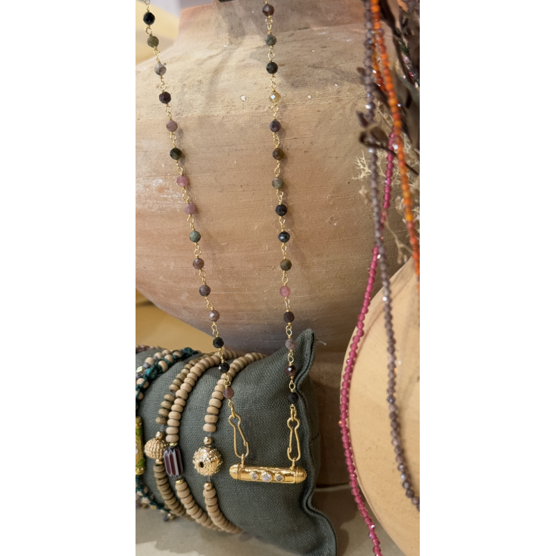 Collier chaine plaqué or 3 microns, breloque rubellite et tourmalines. Pièce unique Création artisanale dans un petit atelier montpellierain.