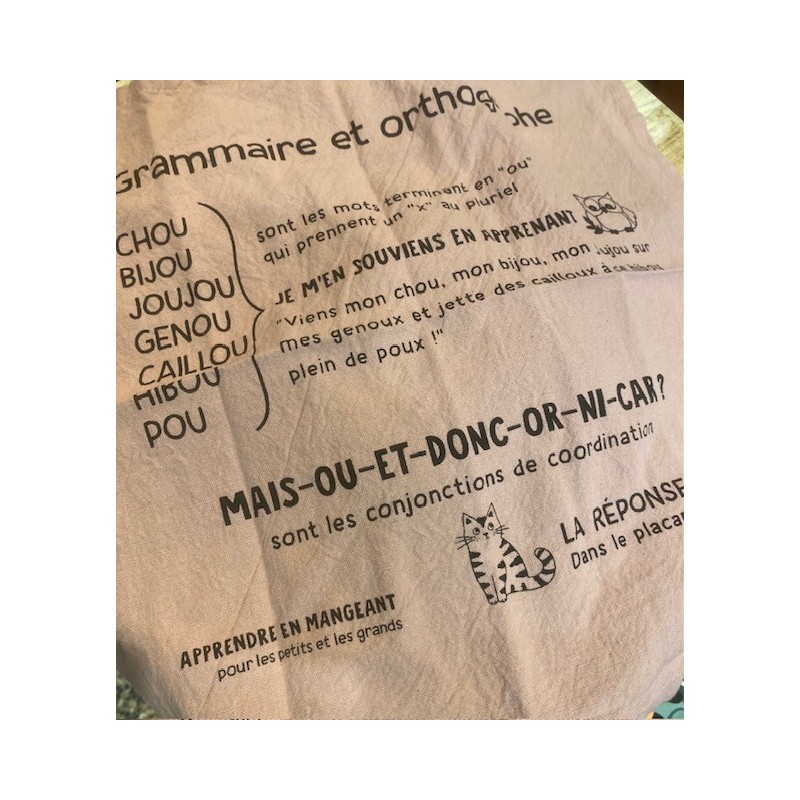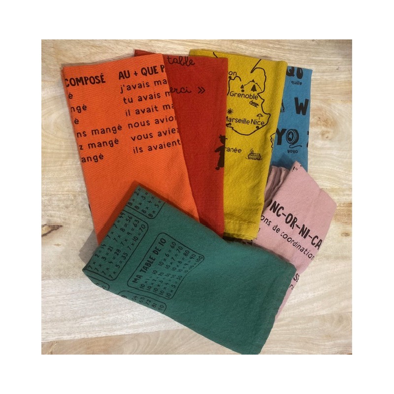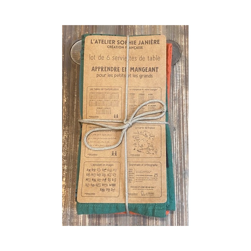 Ces serviettes de table APPRENDRE EN MANGEANT sont à la fois ludiques et décoratives.