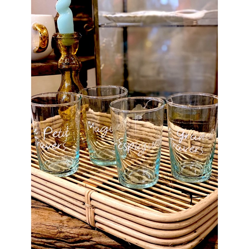 Vendu en boite kraft de 6 verres. Contenance: 25CL Matière: verre Hauteur: 9 cm Le plus: Sérigraphié en France et lavable au lave-vaisselle.
