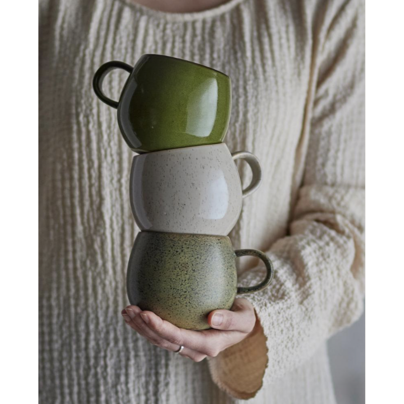 Le Mug Addison de Bloomingville est un charmant mug en grès dans des tons de vert, blanc et brun verdâtre.