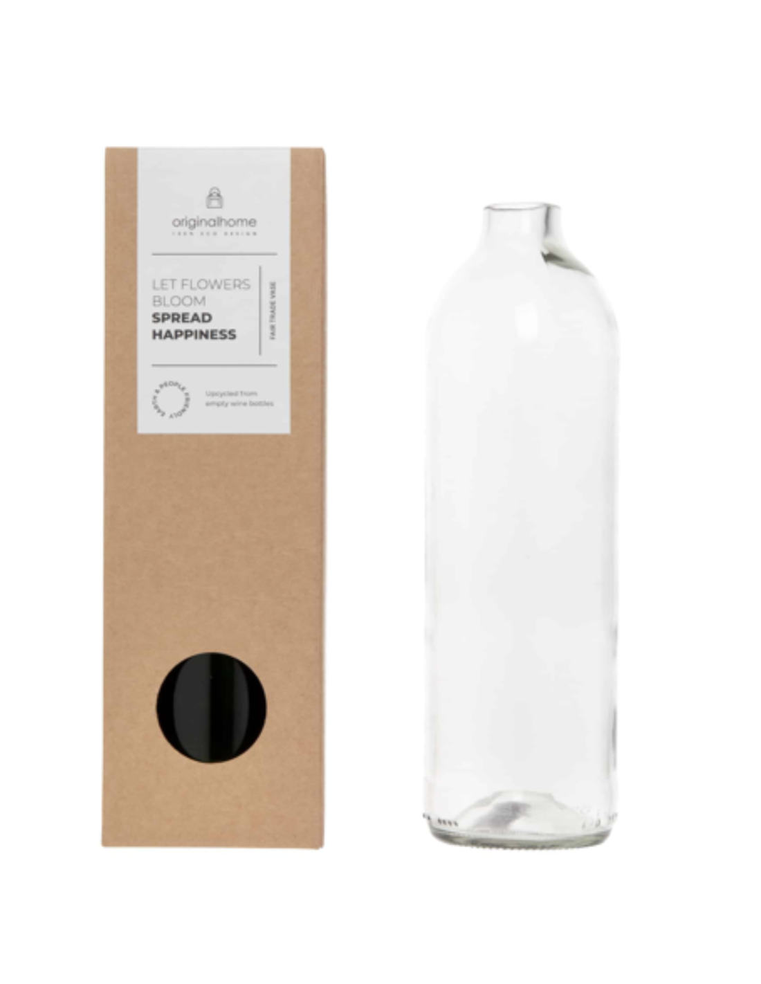 Le Vase bouteille est fabriqué à partir de bouteilles de vin recyclées.