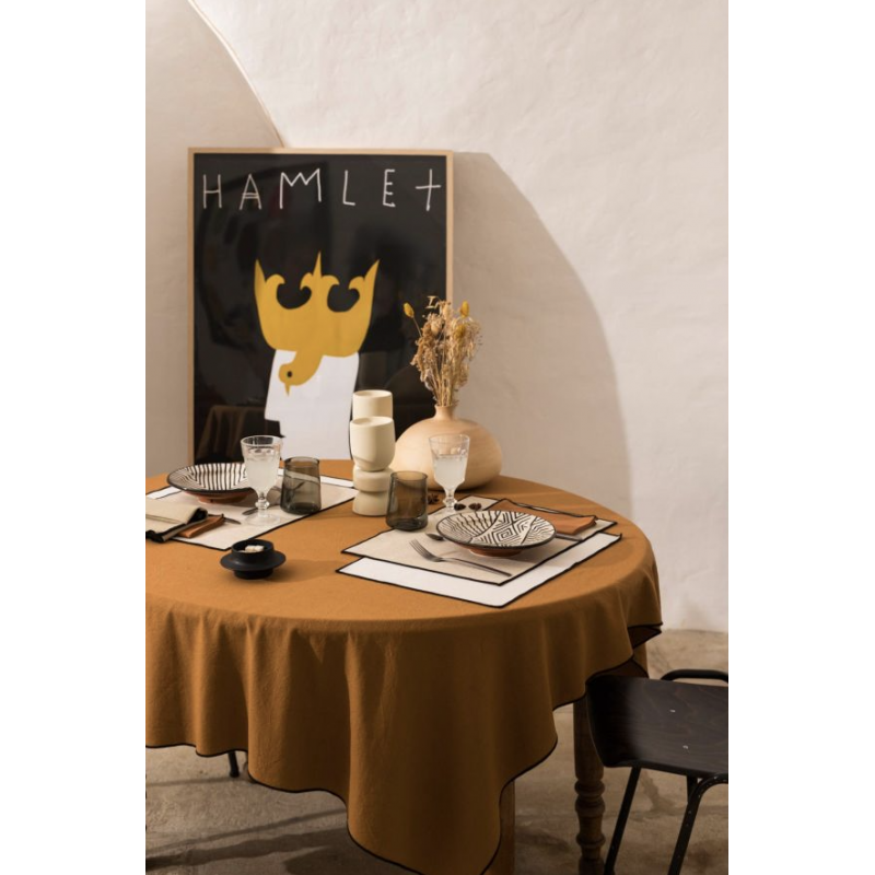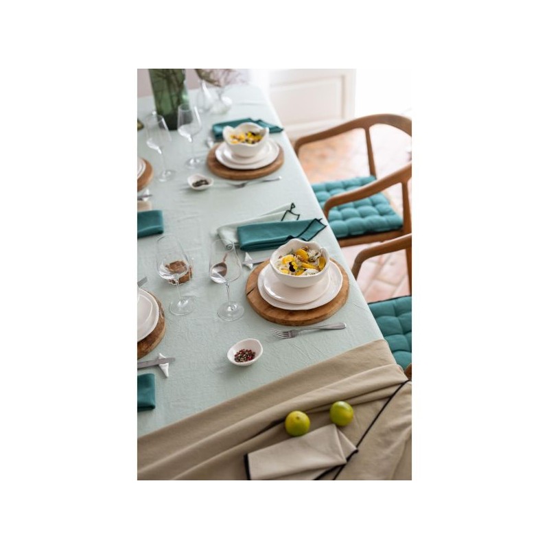 Avec sa finition bourdon contrastant pour un maximum d'élégance, son coton recyclé et lavé pour plus de douceur et de respect de l'environnement elle sera indispensable pour recevoir vos convives dans une ambiance chic et festive avec une note écologique.
