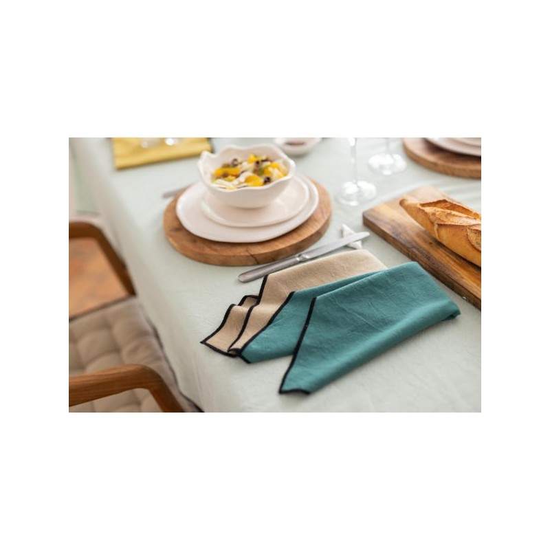 Coordonnée avec la nappe assortie de la même gamme, cette serviette de table en 100% coton recyclé et lavé est l'accessoire parfait pour mettre en valeur votre table.