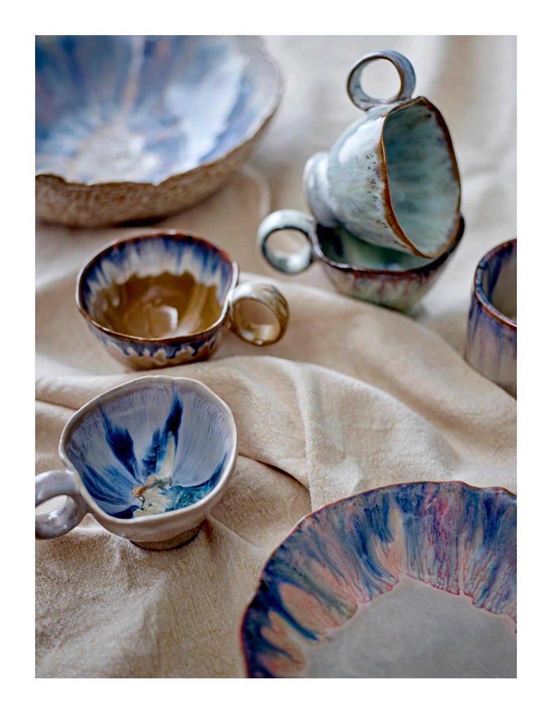 L'aspect fait main et la glaçure réactive assurent que chaque tasse est unique.