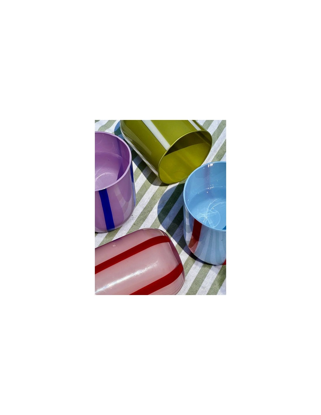 Un ensemble vibrant de verres rayés et colorés conçus pour les audacieux et les espiègles.