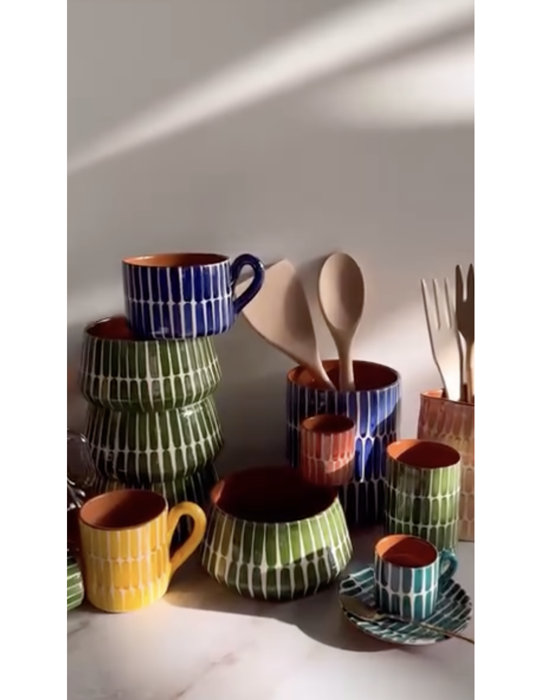 Certaines marques dans la glaçure sont naturelles et prévisibles, de même que certaines craquelures. Cela n'affectera pas l'utilisation ou la durabilité des pièces.