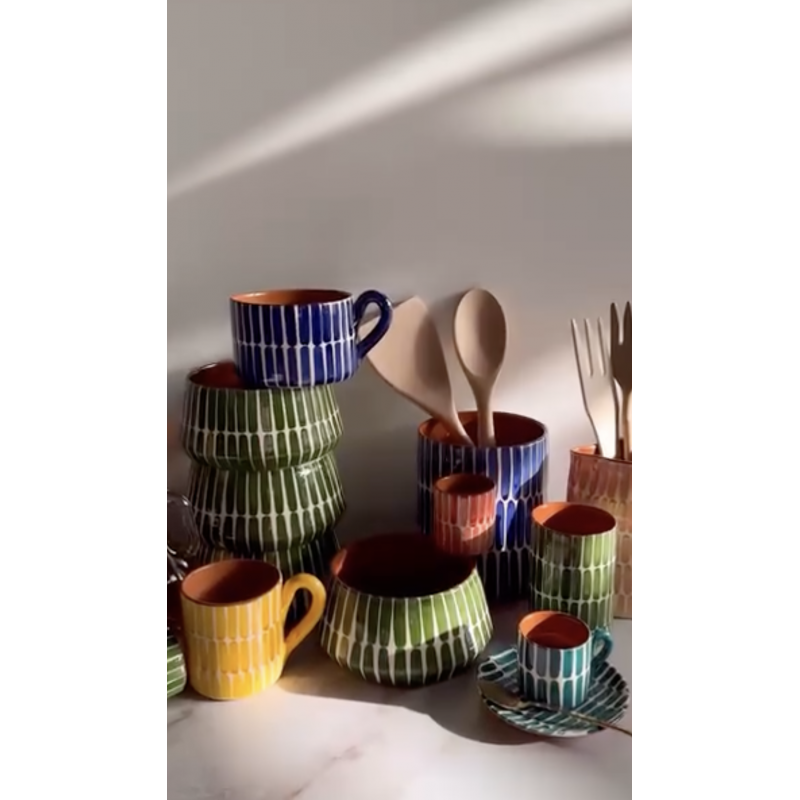 Certaines marques dans la glaçure sont naturelles et prévisibles, de même que certaines craquelures. Cela n'affectera pas l'utilisation ou la durabilité des pièces.