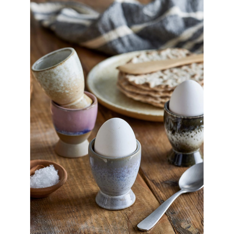 Le Coquetier Paula de Bloomingville est en grès dans des nuances de rose, violet et brun ou bleu.