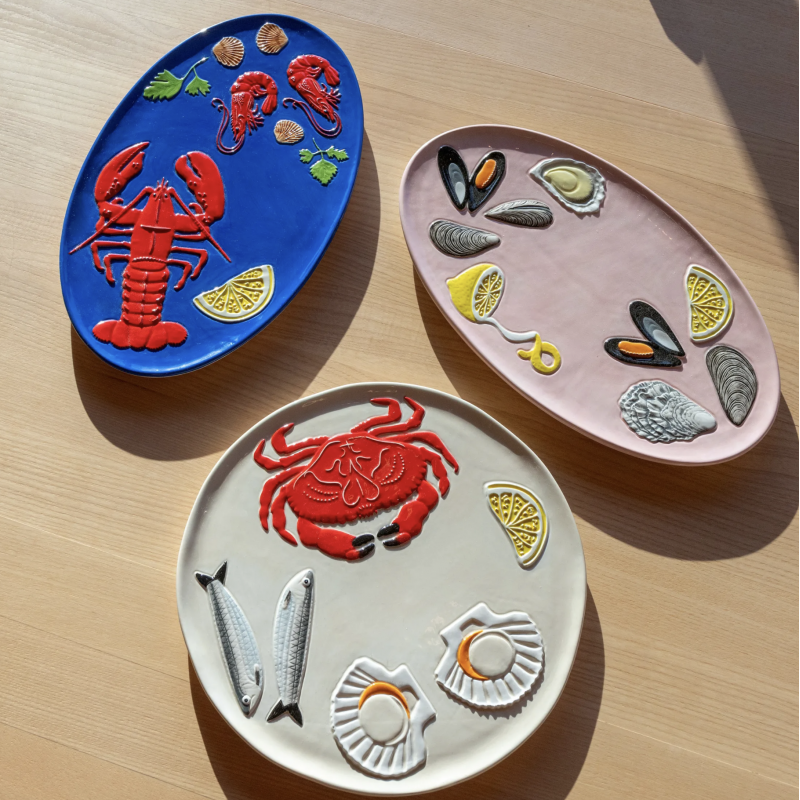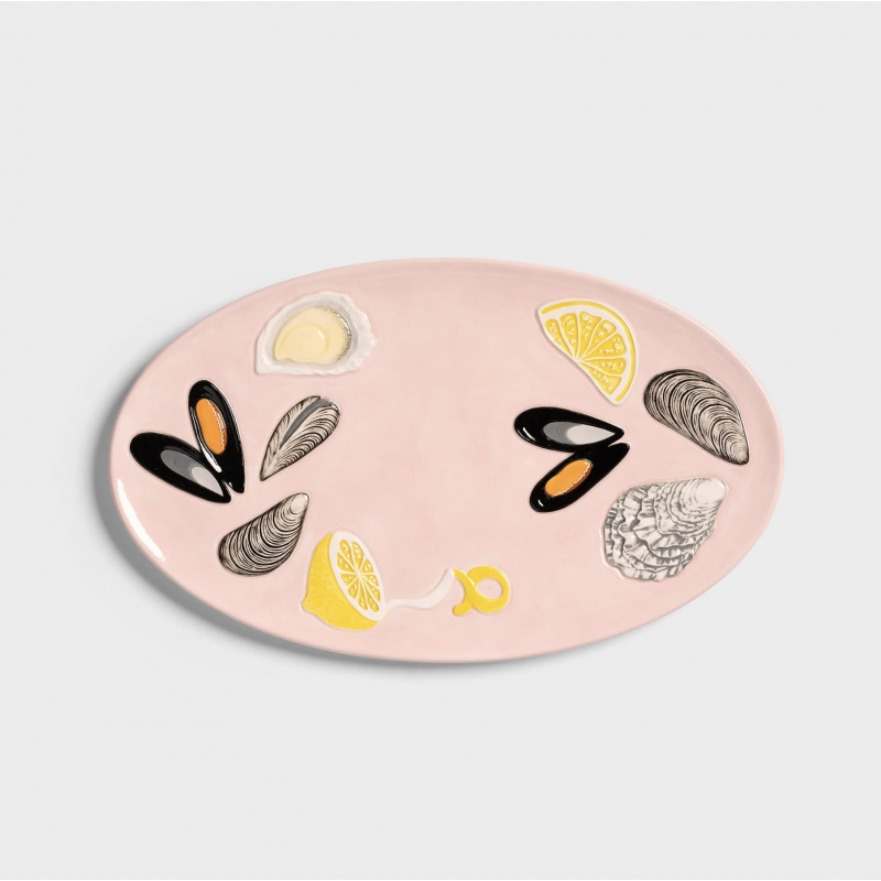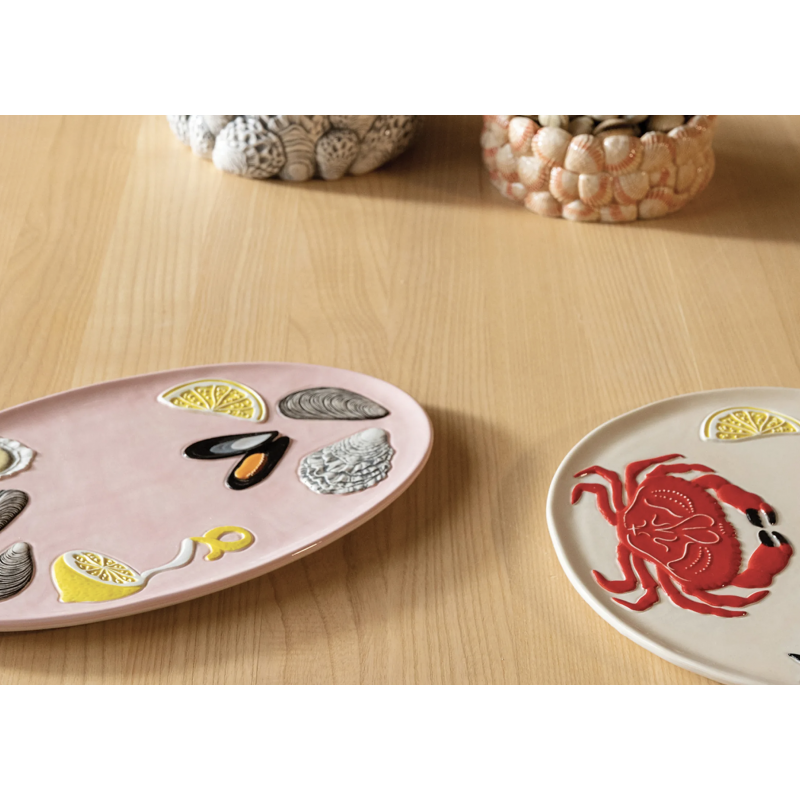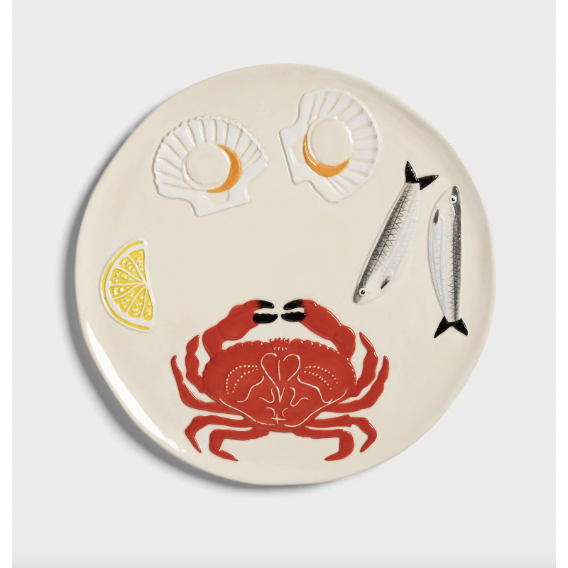 Le plat de la mer met en valeur toute sorte d'aliment sur une table un comptoir, mais il est également parfait comme décoration murale.