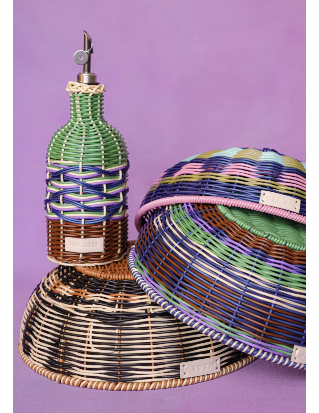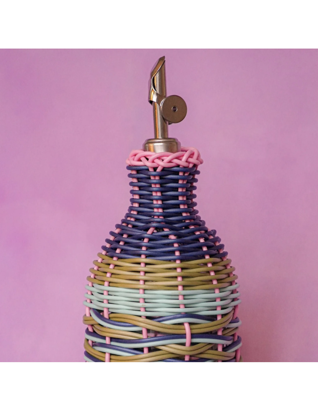Apportez une touche de gaieté à votre cuisine avec le verseur à huile tissés à la main MÆGEN, où les couleurs vives rencontrent un design bien pensé. Chaque bouteille en verre est enveloppée de polypropylène coloré, tissé à la main pour créer une belle texture imitation rotin et un motif unique. Inspirés du style bistrot rétro classique, les coloris vifs et le tissage complexe ajoutent une touche contemporaine et joyeuse.
