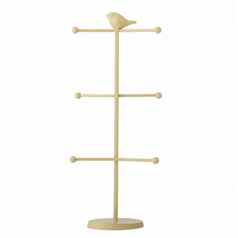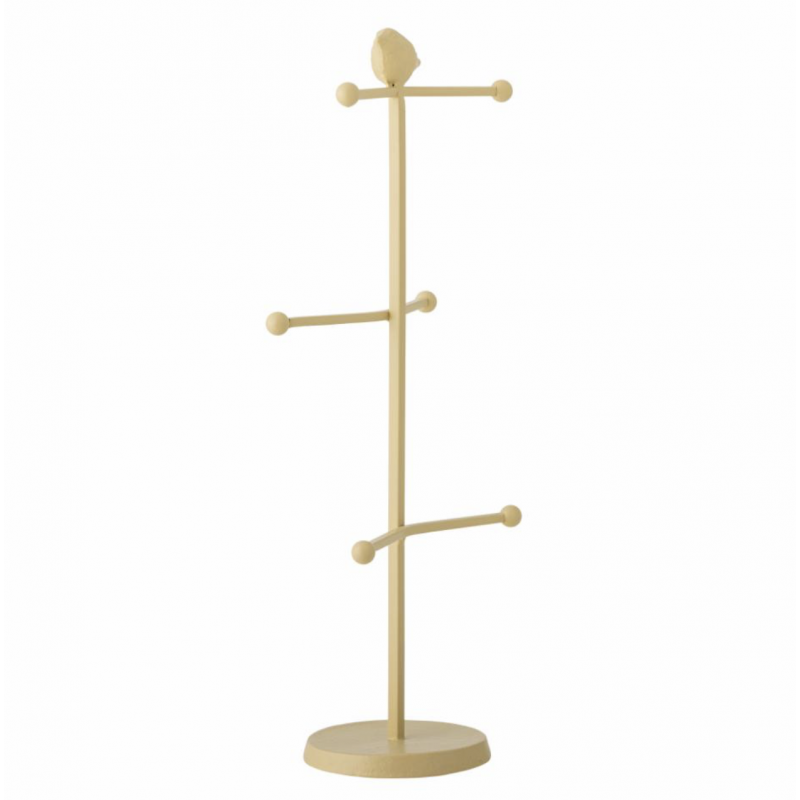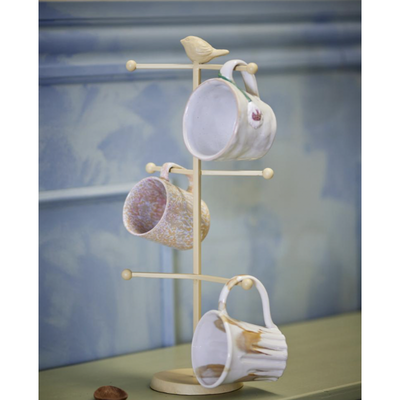 Le Présentoir à tasses est fabriqué en fonte thermolaquée de couleur naturelle. Les trois barres transversales permettent de suspendre des tasses, des gobelets ou des bijoux, tandis que le petit oiseau sur le dessus ajoute une touche décorative.