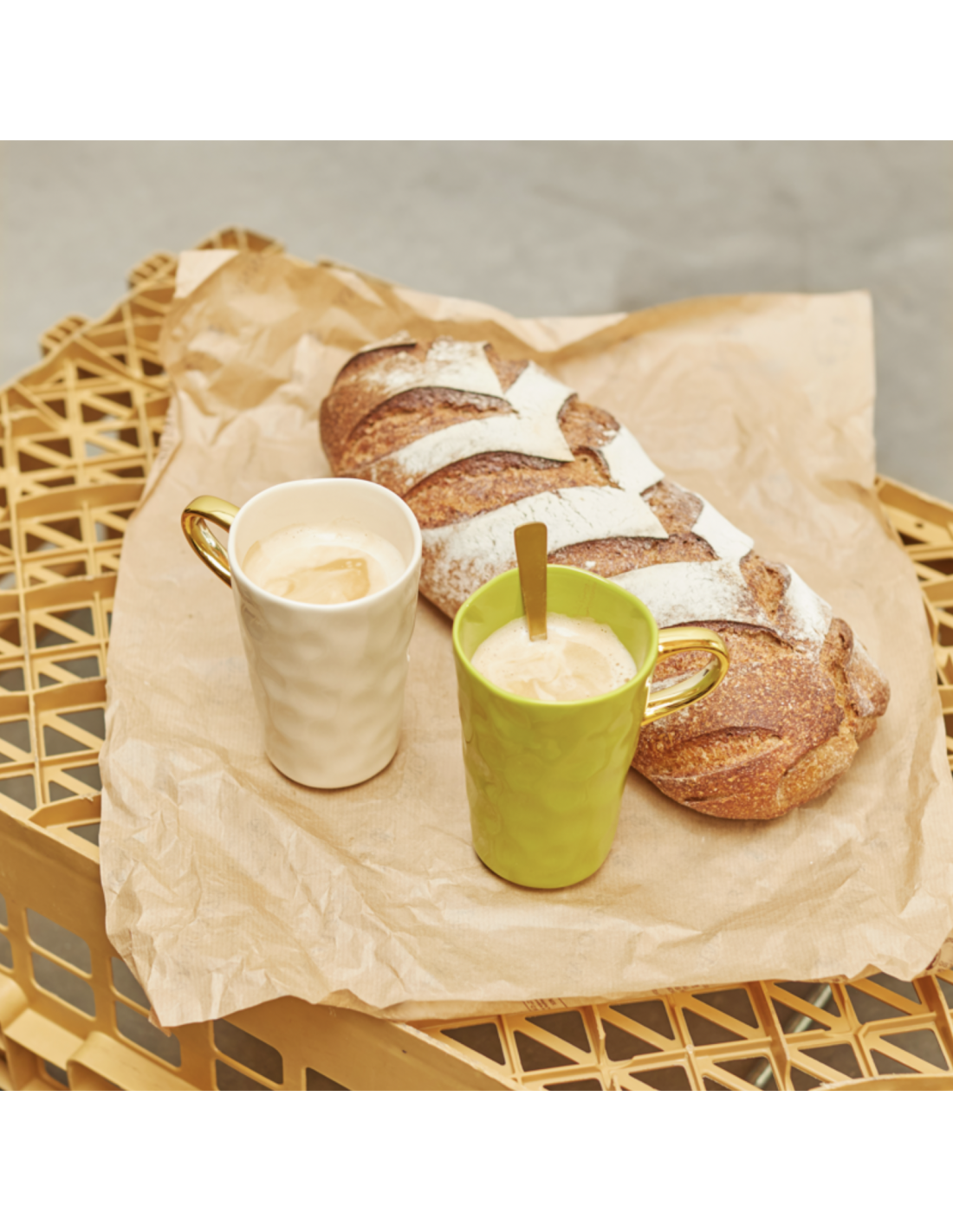 Profitez d'une matinée tranquille et douillette avec cette tasse à latte, issue de la collection Good Morning, avec son anse dorée. Assez grande pour contenir un latte généreux, mais élégante dans sa forme, elle invite à un rituel café réconfortant. Une pièce de vaisselle joyeuse qui transforme chaque gorgée en un moment doux et apaisant.