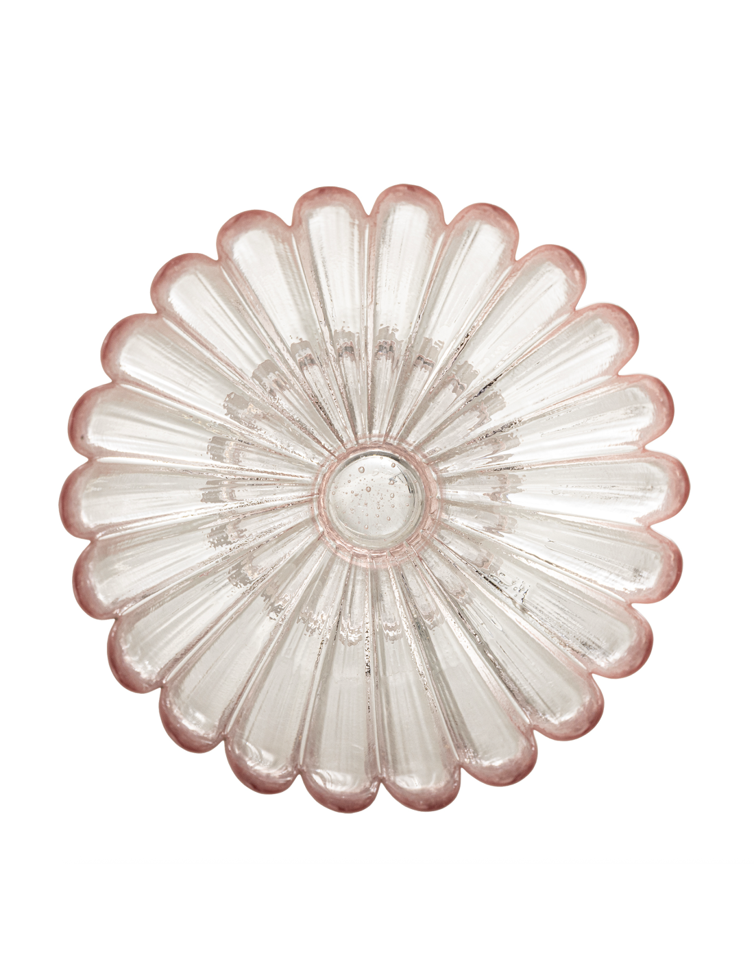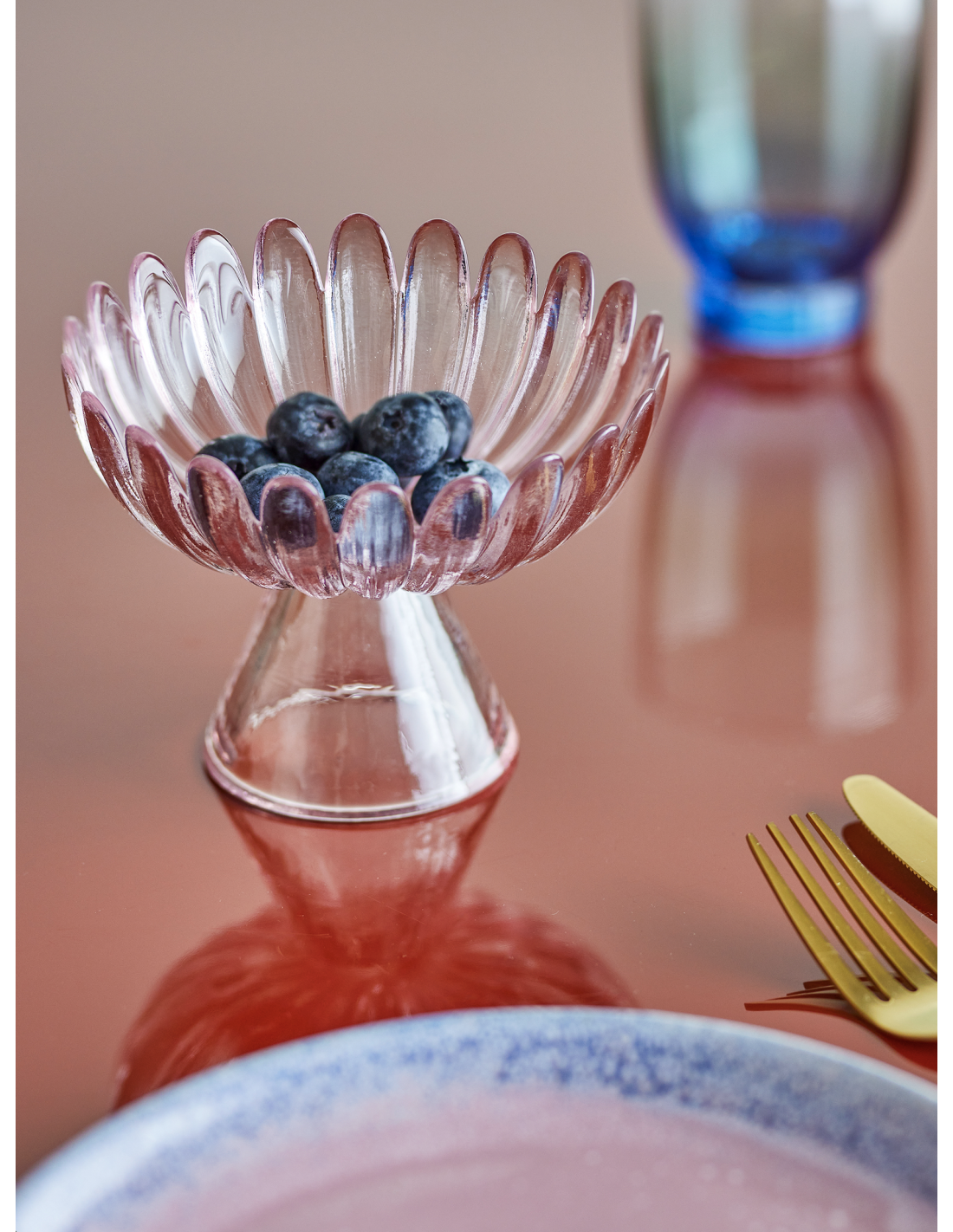 la coupe à dessert Nalu de Bloomingville est une coupe en verre avec une finition vaporisée dans un rose doux.