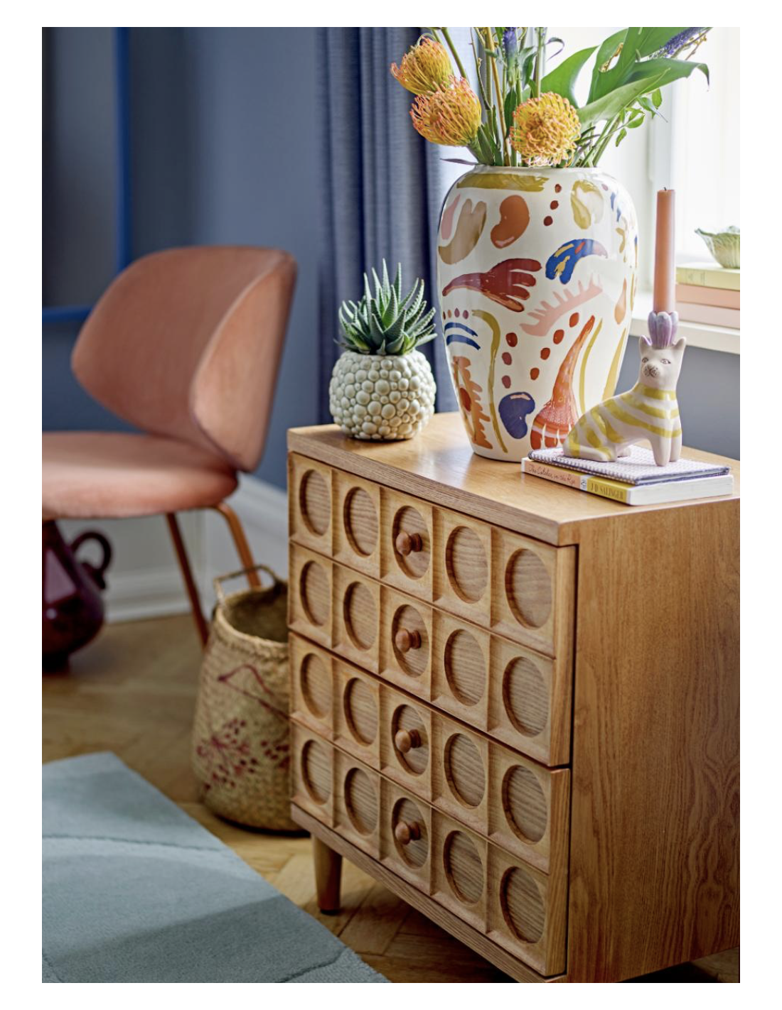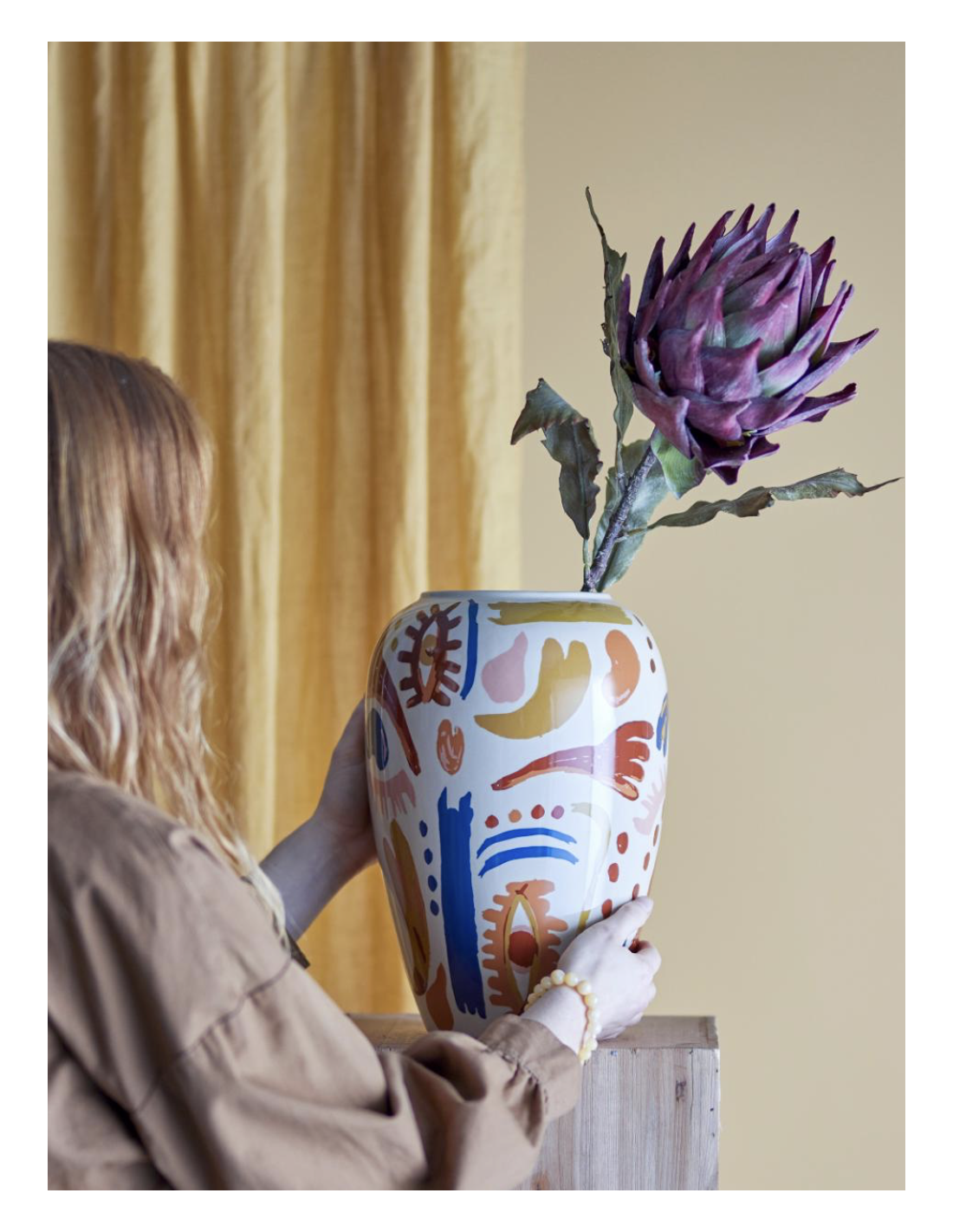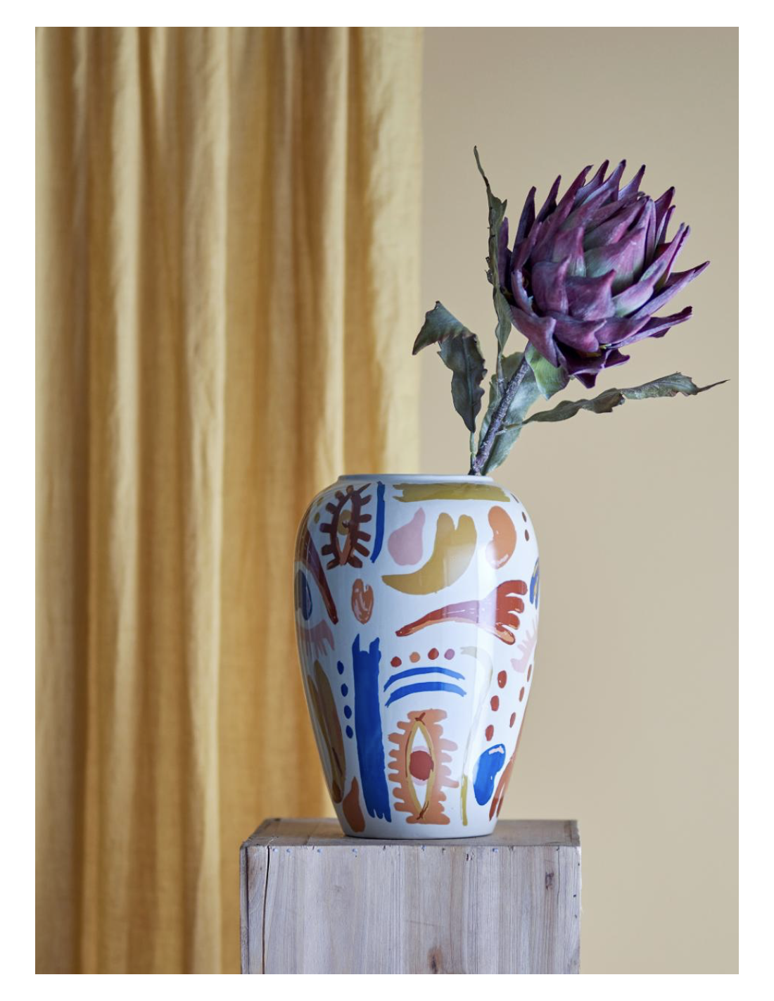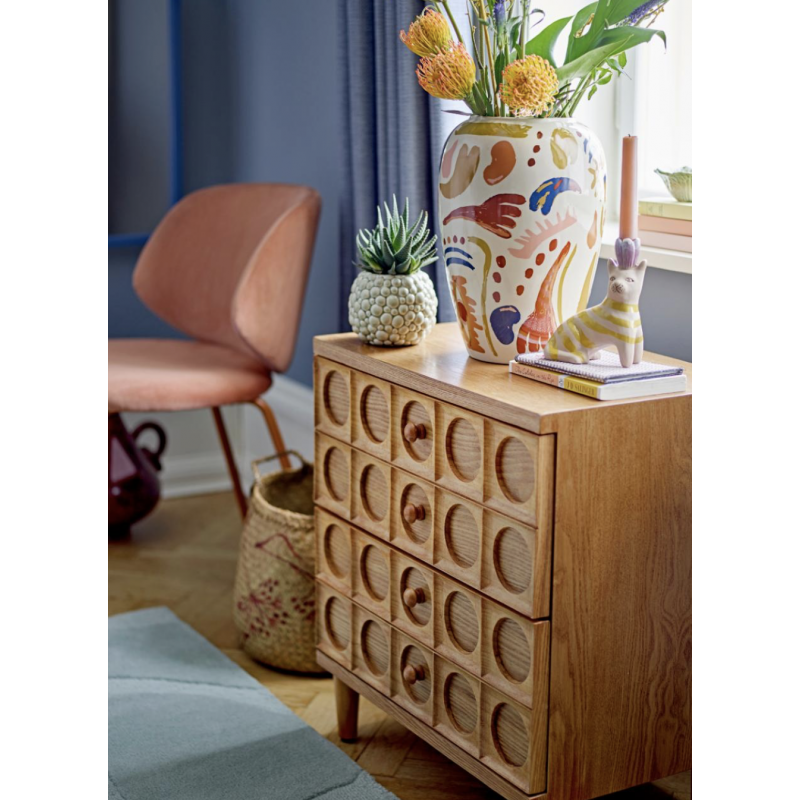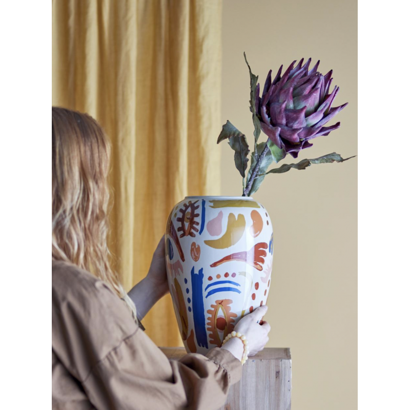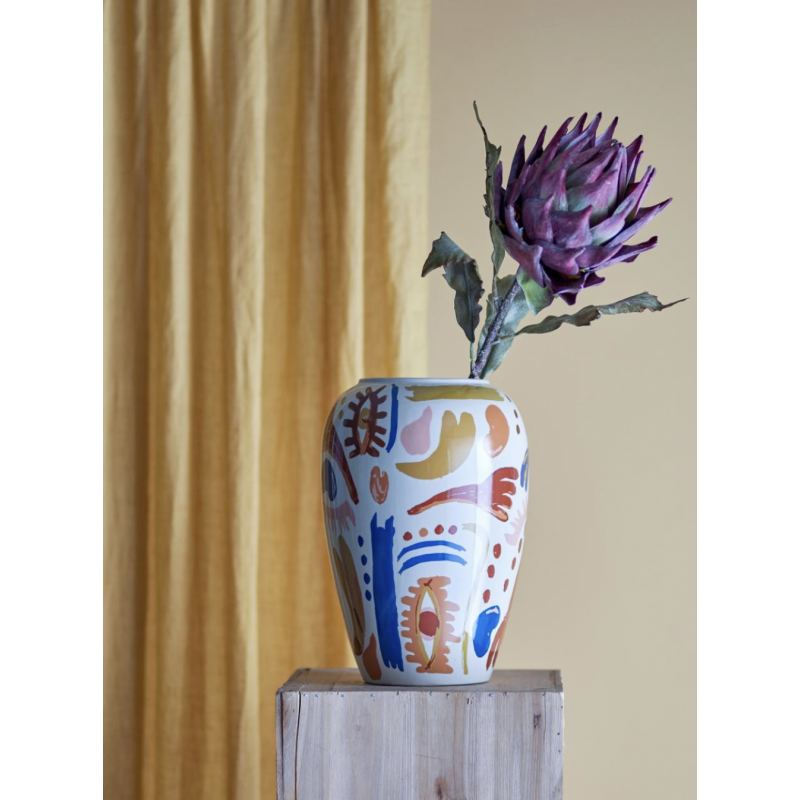 Le Vase Horus de Bloomingville est magnifiquement décoré avec un motif expressif, formant un mélange harmonieux de nuances chaudes et froides.