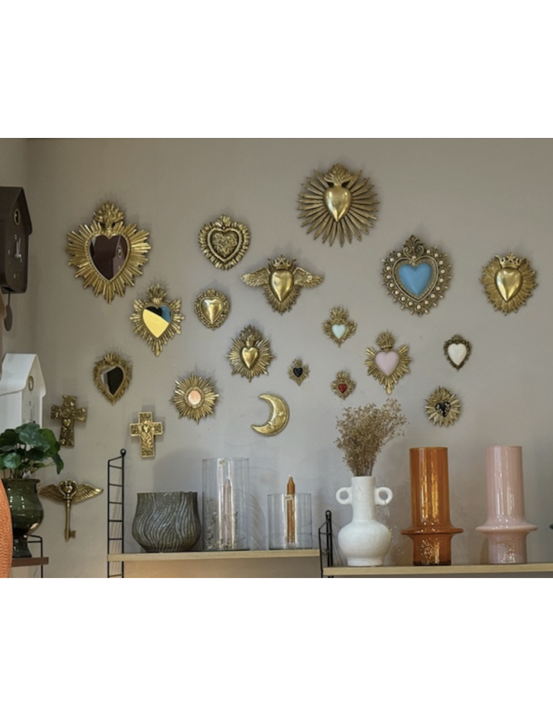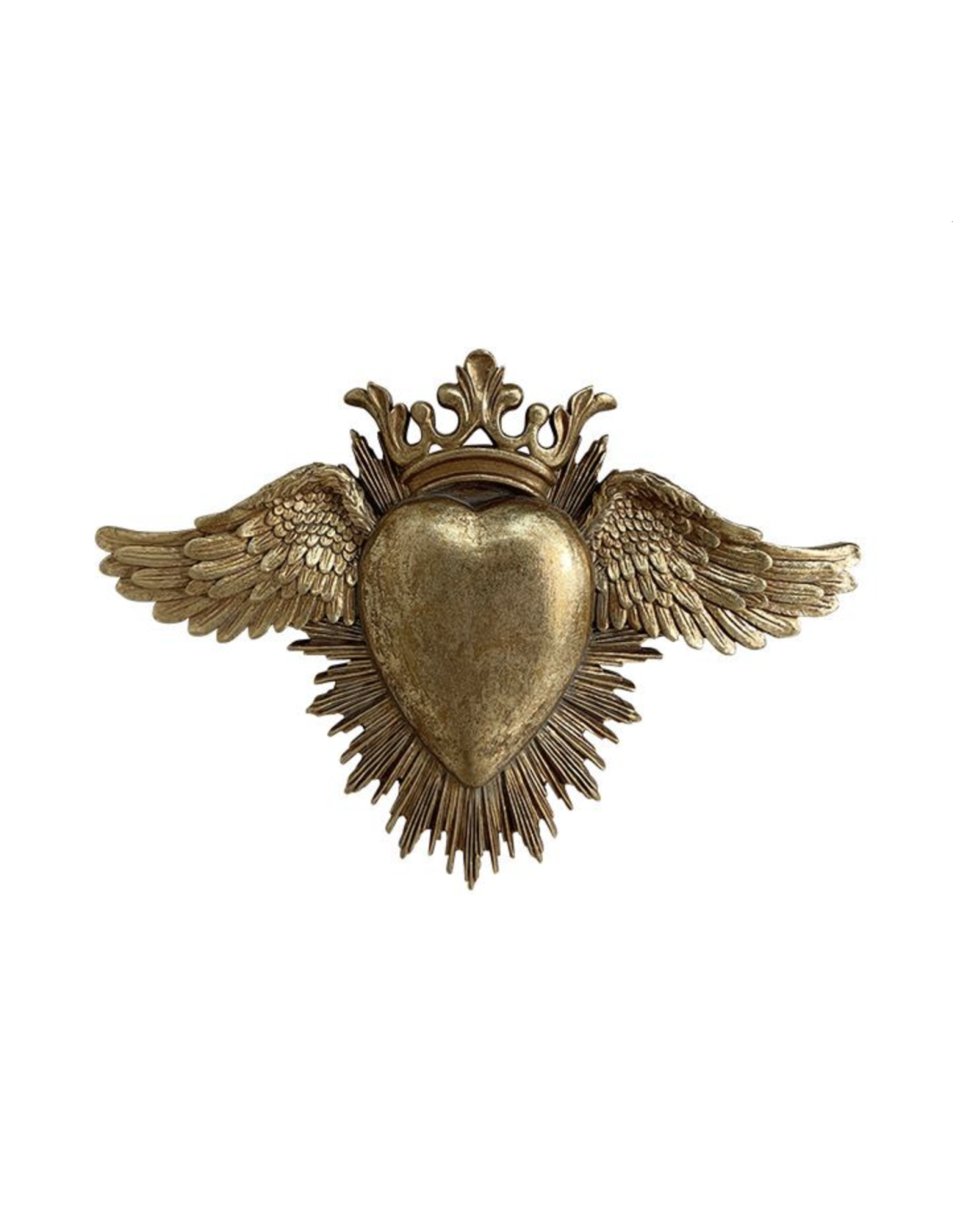 Décoration murale ex-voto coeur soleil doré en composite
