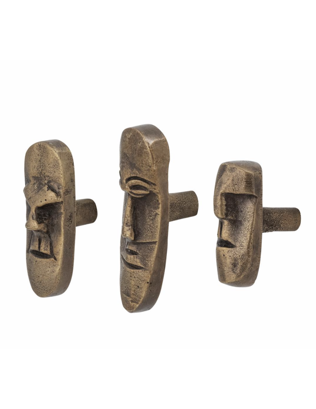 Les patères Jespar de Bloomingville en métal couleur laiton s'inspirent d'un visage.