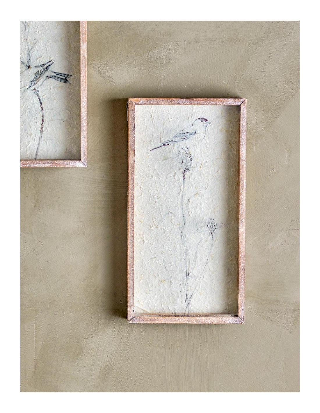 L'illustration avec cadre ajoute une touche étonnante à n'importe quel espace intérieur. Décorée d'un oiseau magnifiquement peint à la main sur le verre, elle apporte une sensation d'élégance vintage. La pièce est encadrée en bois de sapin, amplifiant son charme vintage.