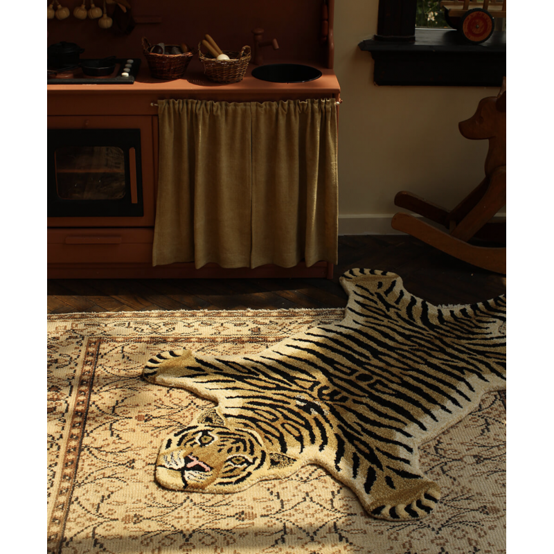 Ce tapis est fabriqué à la main en Inde: 100 % laine, avec un verso en coton.
