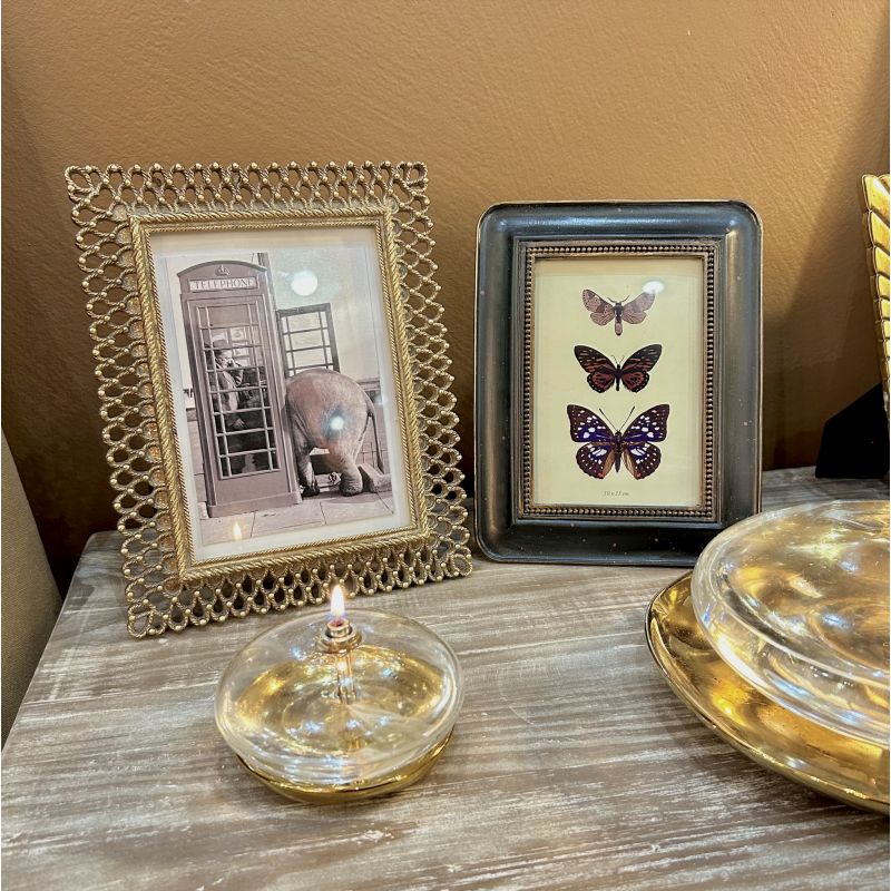 Ce cadre doré, sublimé par un ornement en maille délicatement travaillé, apporte une touche d'élégance et de raffinement à votre décoration.