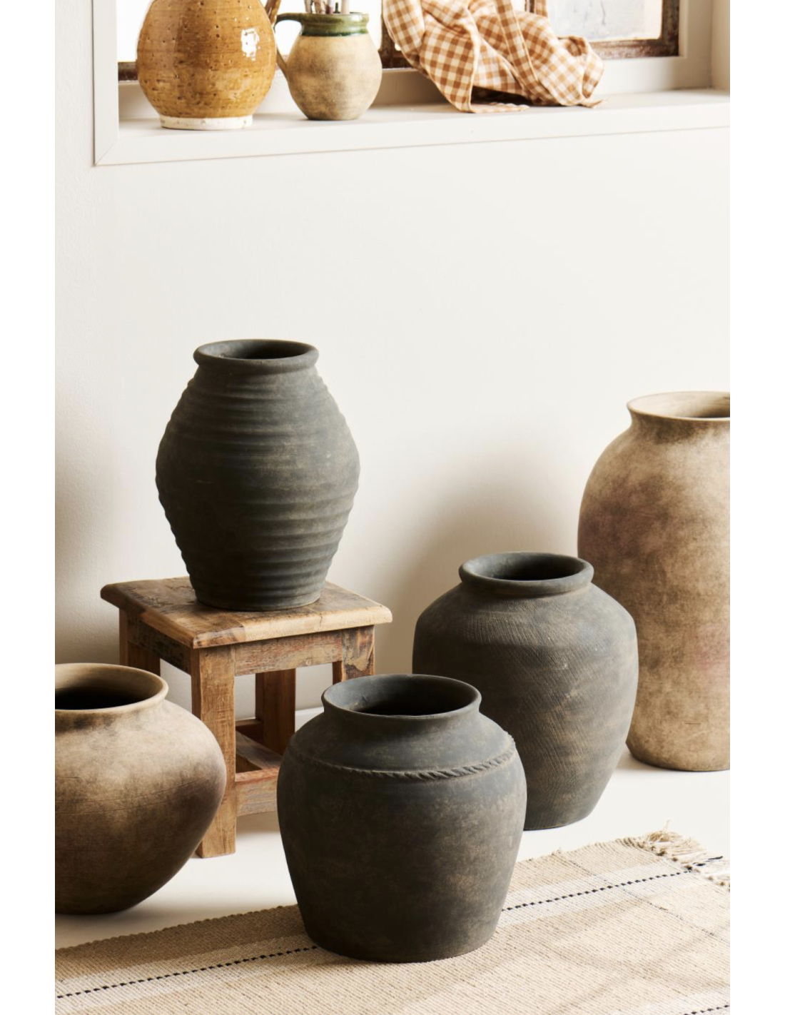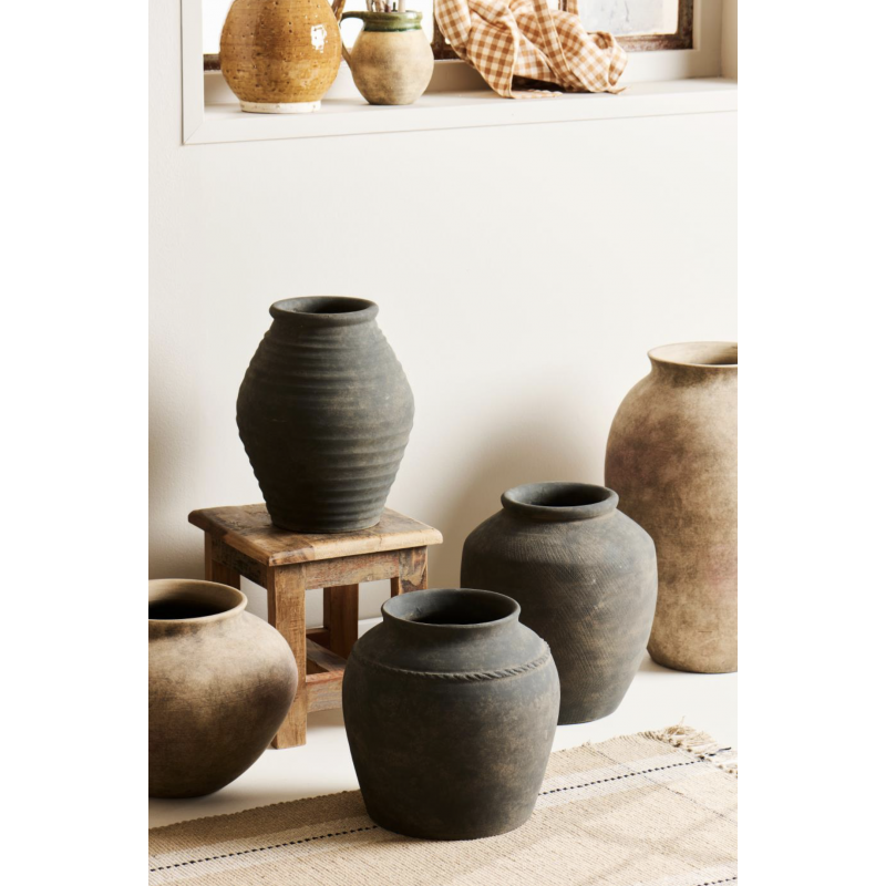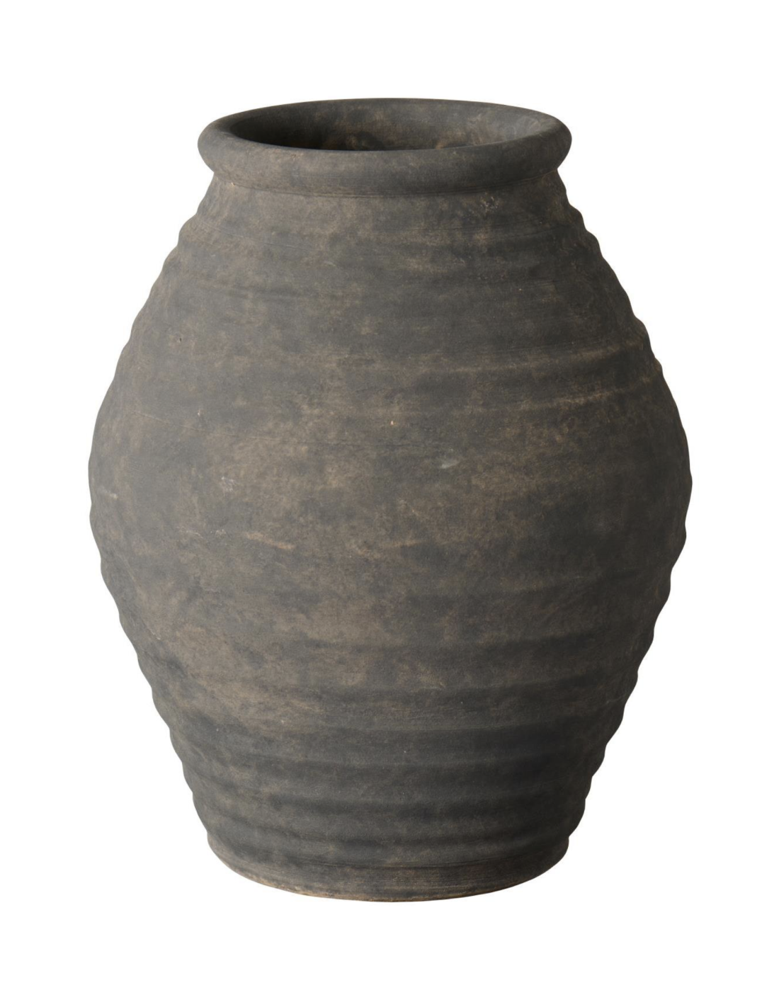 Pot de la gamme Minerva, en terre cuite, avec de légères rainures horizontales.