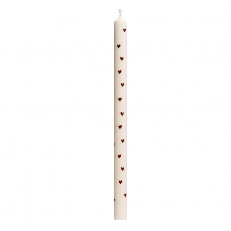 Bougie fine, haute et élégante avec de charmants cœurs.