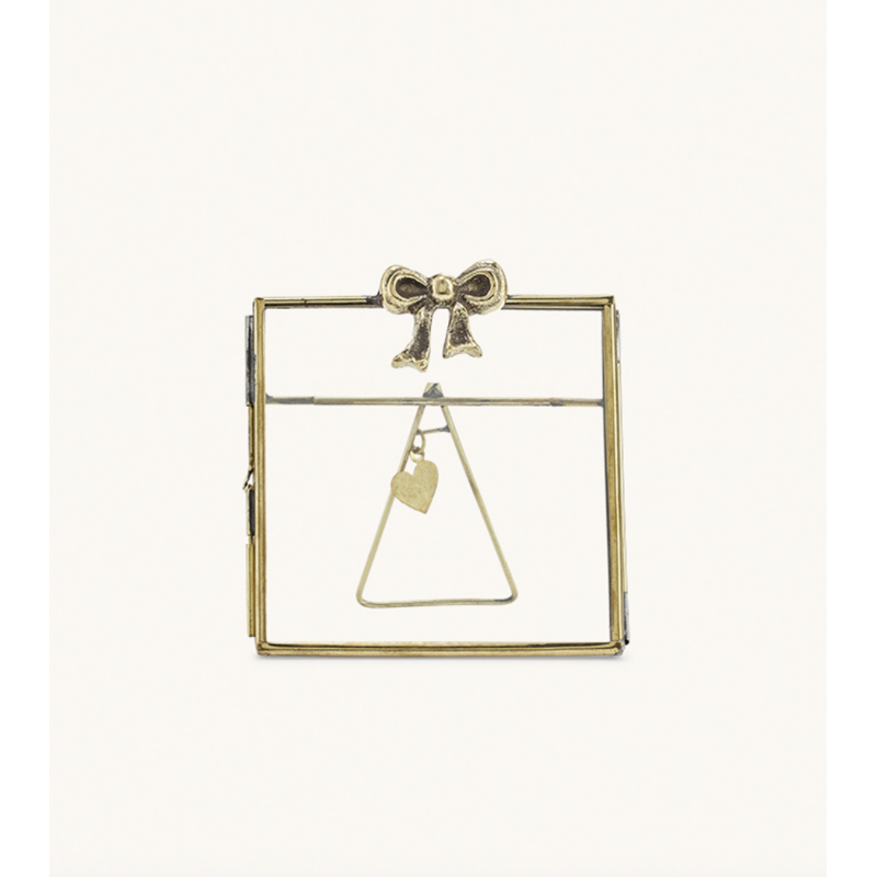 Apportez une touche poétique et vintage à votre intérieur avec le cadre photo Bowie en forme de nœud. Fabriqué à la main en laiton recyclé et en verre transparent, ce cadre délicat est orné d’un petit nœud doré au sommet – un détail raffiné qui attire subtilement le regard.
