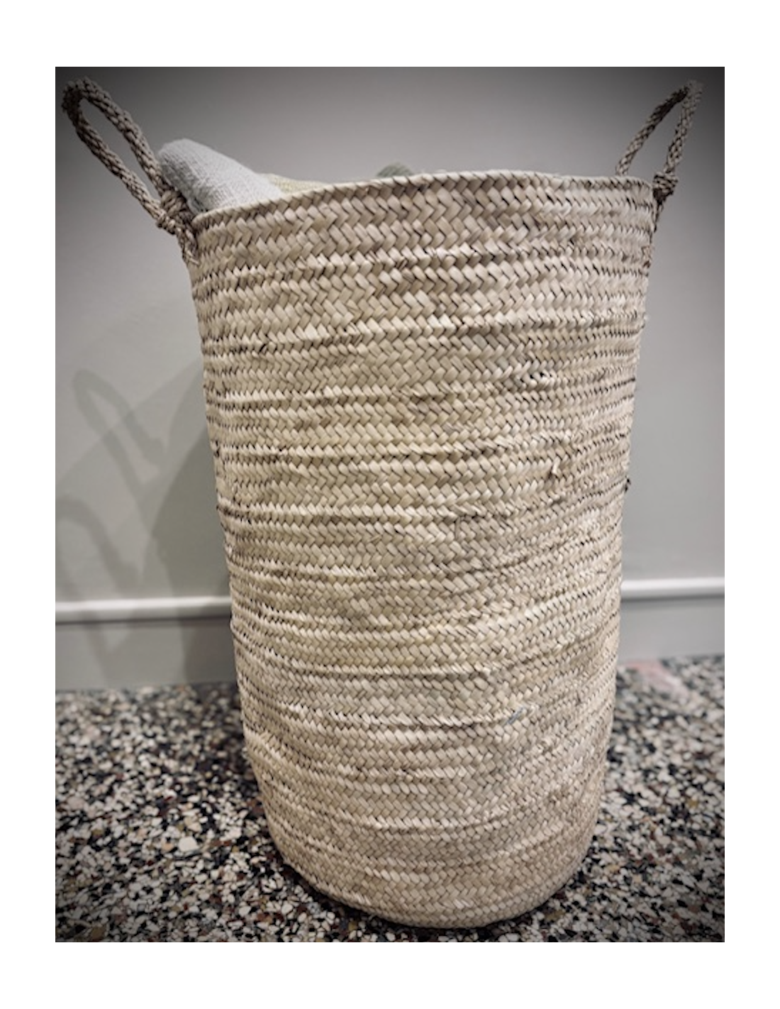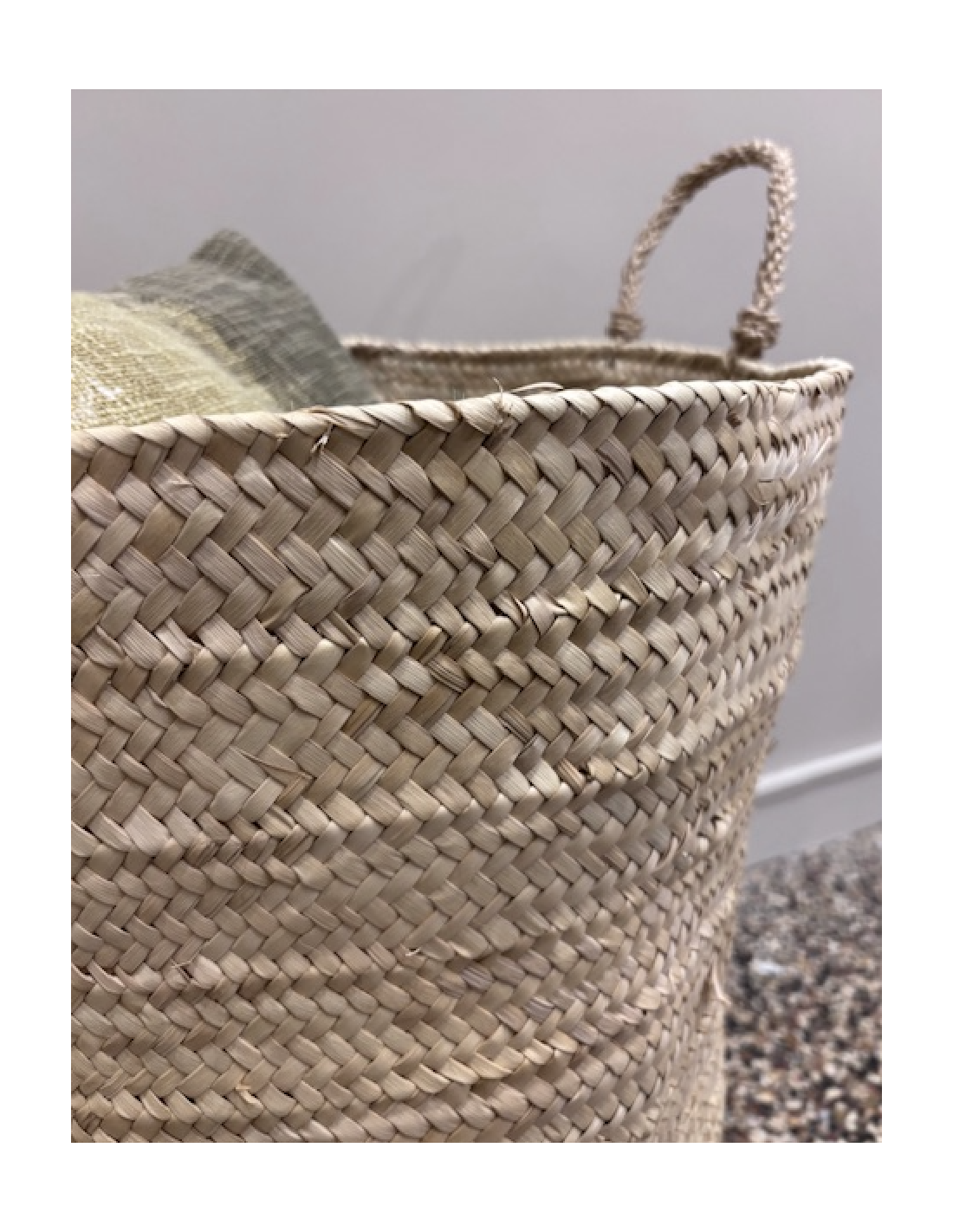Grand Panier à linge naturel sans couvercle tissé en feuilles de palmier séchées, il convient à de multiples utilisations : panier à linge, bac à jouet, rangement dressing …