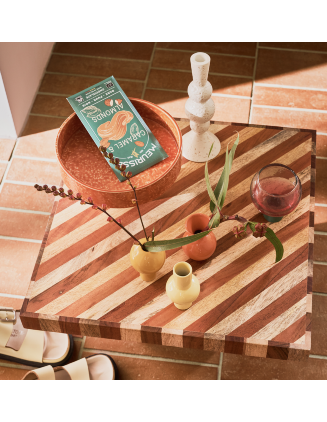 Un charmant mini vase aux teintes vives orange et jaune pâle, chacun avec sa propre personnalité espiègle. Fabriqués à partir de céramique recyclée, ils vous invitent à vous faire plaisir ou à faire plaisir à quelqu'un de spécia. Un ajout joyeux à tout décor intérieur.
