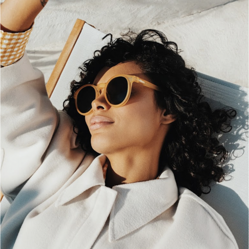 Lunettes de soleil Forme OFFICE : carrée, oversize, look tendance Monture mate, soft touch et biosourcée Protection 100% UV catégorie 3 Modèle mixte et universel Pochette de rangement incluse dans l'étui.